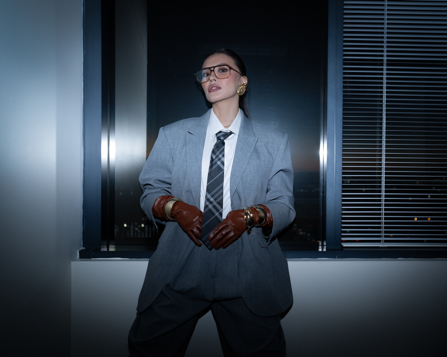 Определить мой стиль одним словом сложно: в один день я выбираю oversize-костюмы и маскулинные образы, в другой — становлюсь романтичной и легкой, а на следующий — могу быть сексуальной «кошечкой» или непринужденным «своим парнем» в рваных джинсах. Образы, созданные для этой съемки, отражают именно эту многогранность — переменчивость, свободу самовыражения и любовь к экспериментам.