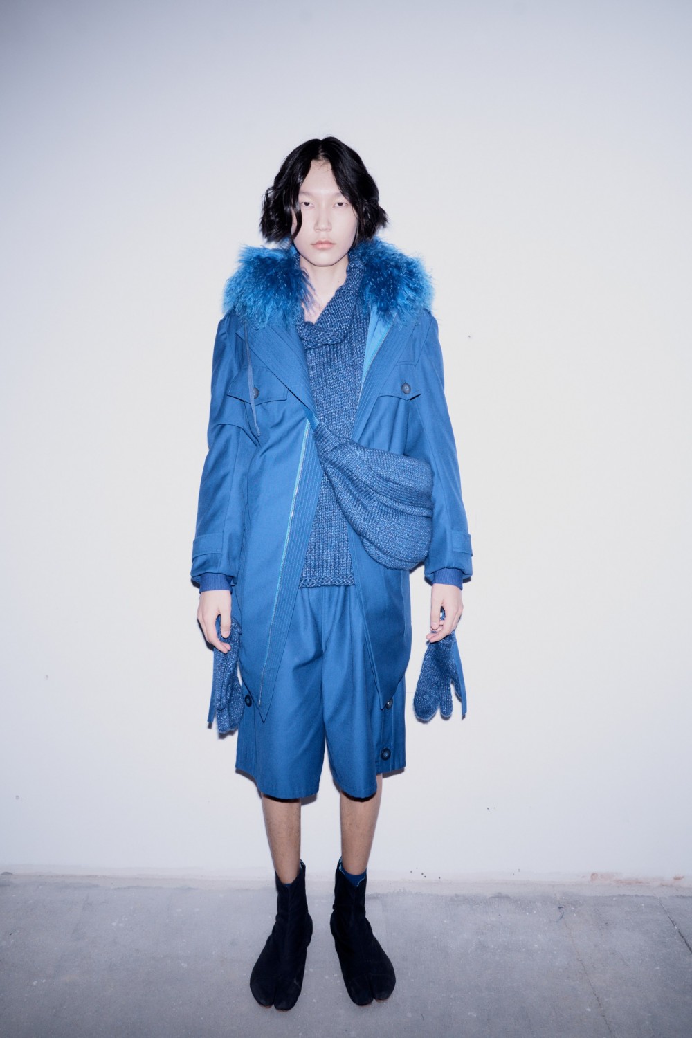 При создании коллекции дизайнер обратилась к кобальтово-синему цвету. И этот оттенок как нельзя лучше отражает идею показа — совершенную индустриальную эстетику. Посредством избранной палитры Айнур Турисбек призывает нас по-новому взглянуть на наш внутренний мир полный противоречий.