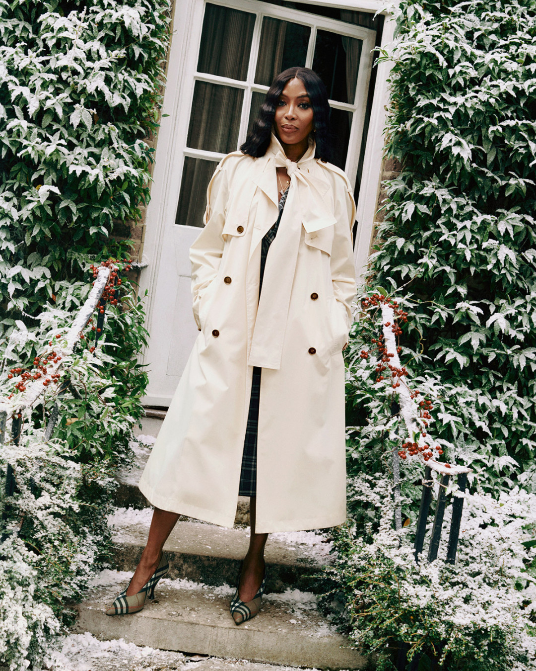 В центре истории — переосмысление культовых силуэтов Burberry. Наоми появляется в тренчкоте Trerose оттенка Tundra Beige с воротником-бантом, а Роузи — в укороченном Fitzrovia с пышной юбкой и пуговицами, на которых выгравирован герб марки с единорогами. А завершают образы сумки Bloomsbury и Highlands, кашемировые шарфы и ароматы Burberry Goddess и Burberry Hero.