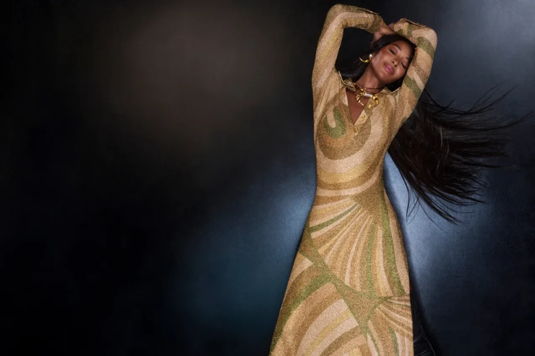 Сегодня их история продолжается в новом ключе — на диско-танцполе Pucci. В кампейне бренда Наоми, сияя в люрексе и джерси, напевает «Did someone say Pucci?» и движется в ритме, достойном Studio 54. Ее энергия идеально совпадает с коллекцией Passepartout.