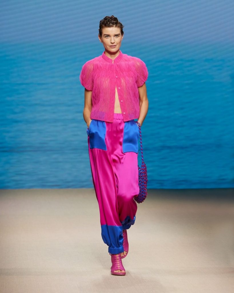 Джорджио Армани представил коллекцию "Весна-Лето 2022" на неделе моды в Милане. Образы, представленные во время показа как будто отсылают к летнему вечеру на морском побережье во время - костюмы, топы и платья оттенка малинового заката смешиваются с кобальтовым цветом вечернего моря. Невесомые платья и юбки из тюля, украшенные блестками так и призывают сиять и бежать навстречу ночному морскому бризу, развеваясь изо всех сил. Юбки в пол дизайнер предлагает носить с жилетами, расшитыми стеклярусом.