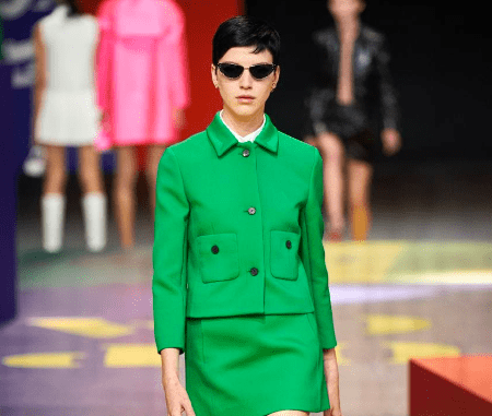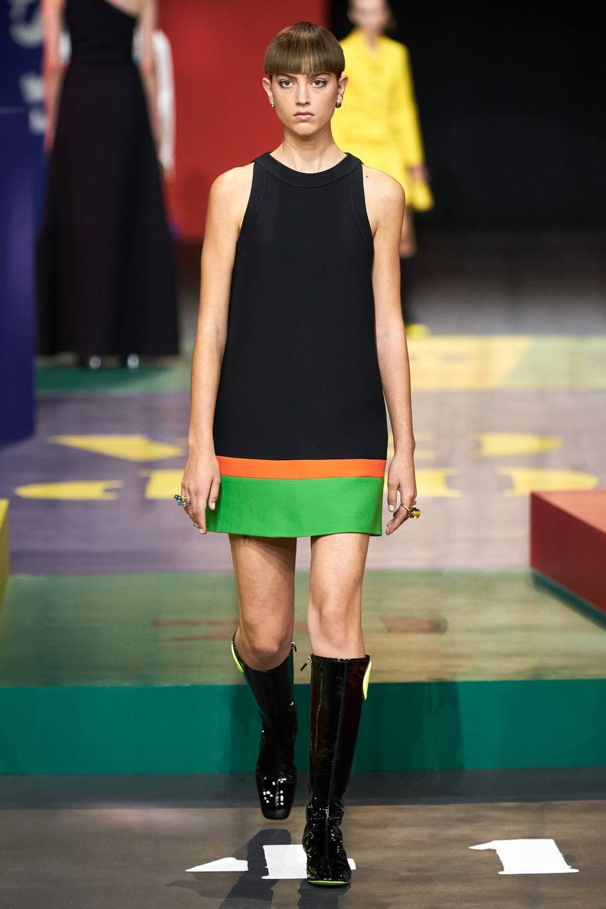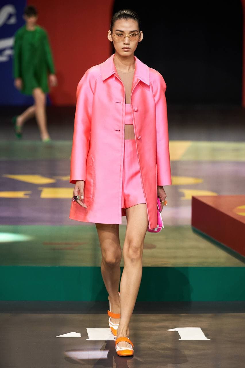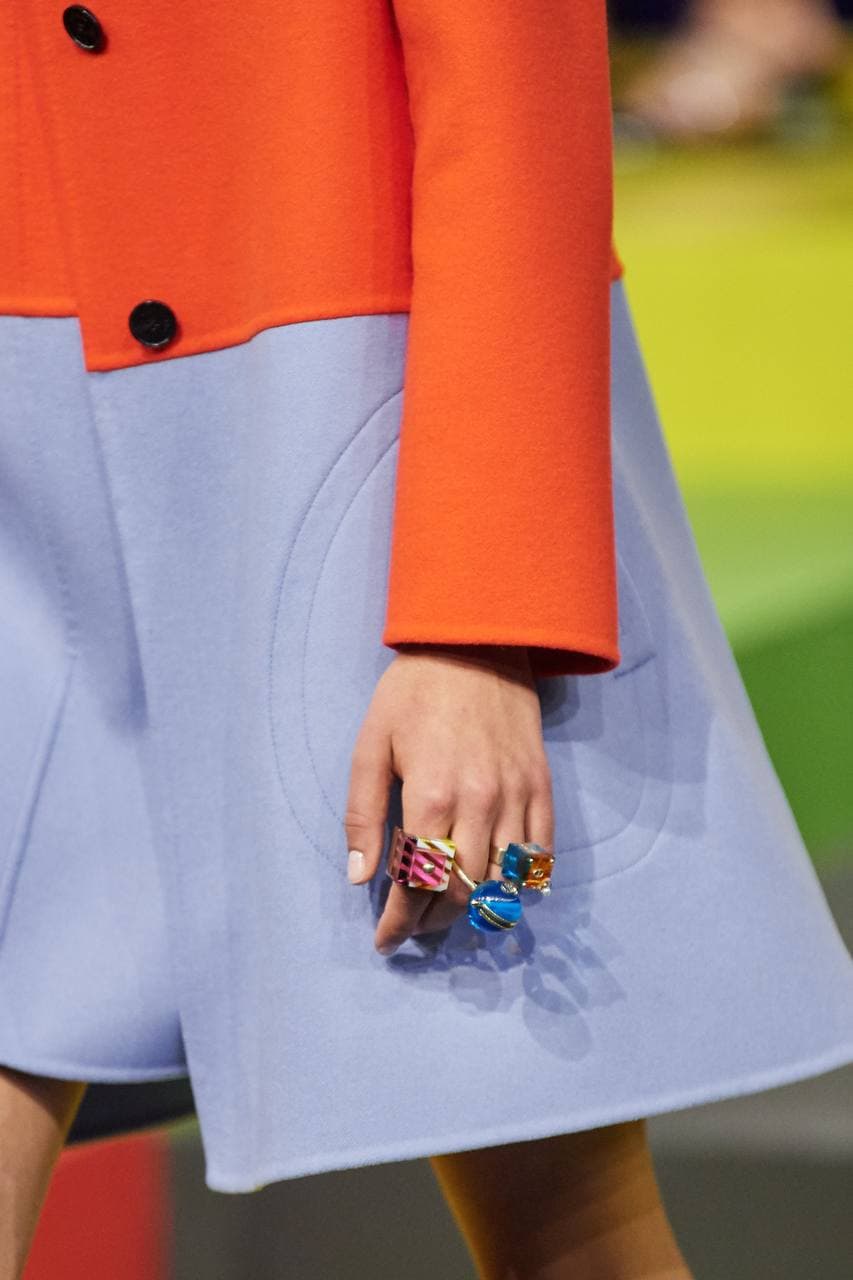 Заряд позитивных эмоций начинался на сет-дизайне подиума в стиле pop-art и завершался выходом на поклон улыбчивой Кьюри. Оптимистичная коллекция с ударными дозами витаминов, представленными сочными оттенками и графичным колор-блокингом, миниатюрными костюмами-двойками, наивными массивными кольцами, спорт-шиком и боксерскими комплектами.