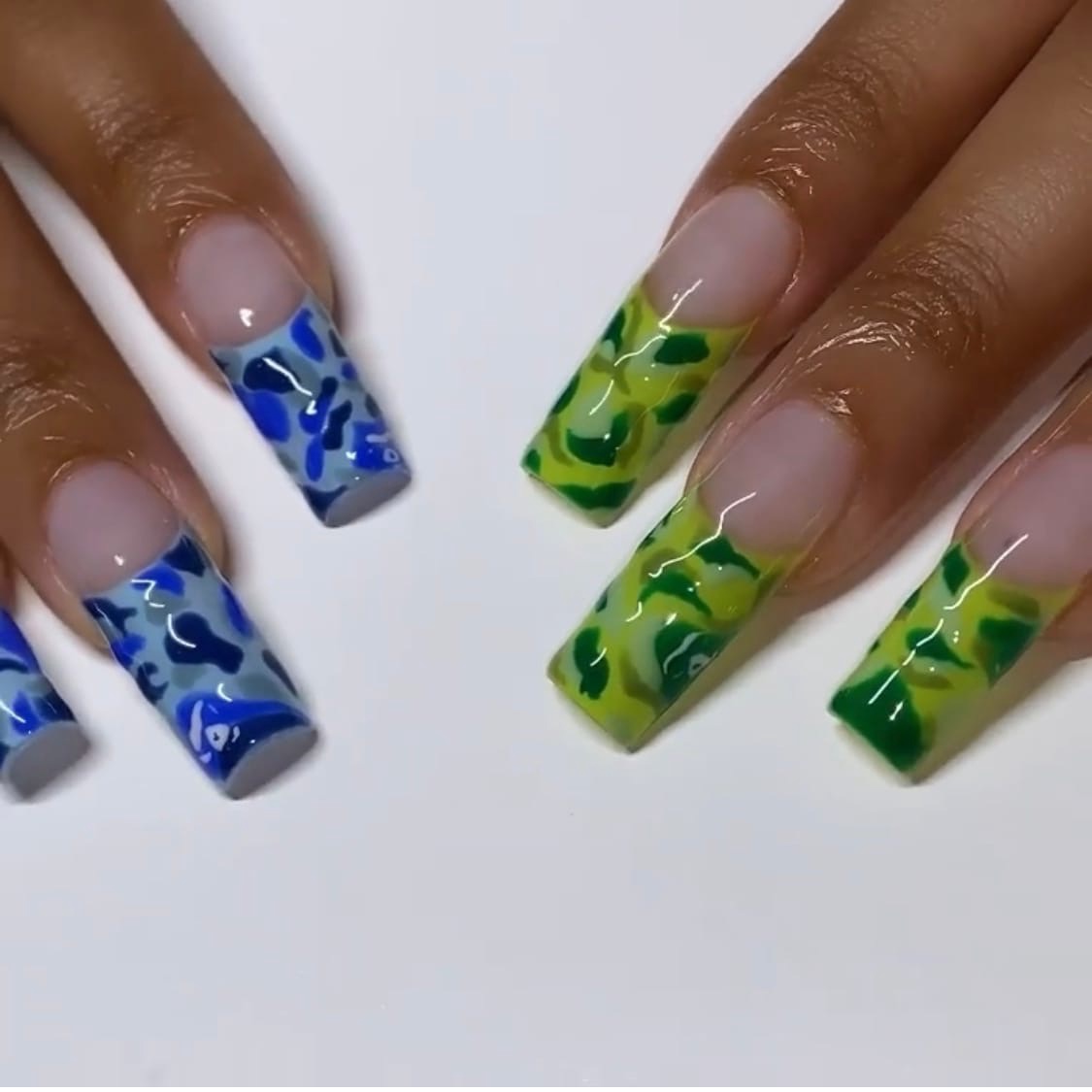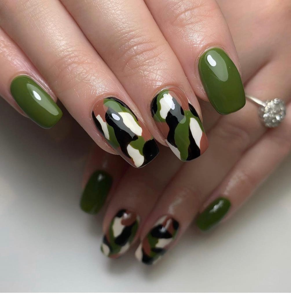 Если вы записались на маникюр, а классический френч или однотонные ногти уже надоели, но интересное фото в духе "my new nails" в Инстаграм запостить все же хочется, то этот новый тренд для вас. От инфлюенсеров до звезд - всем полюбилась тенденция на камуфляжный принт в стиле 2000-х. Учитывая камбэк в начало нулевых в одежде, такой модный акцент на ногти будет отличным завершением образа. Не забываем и про яркий тренд на стиль милитари. Если с луком комо вы еще не решили, то советуем начать с дизайна ногтей. Мы подобрали 10 идей в камуфляжном стиле.