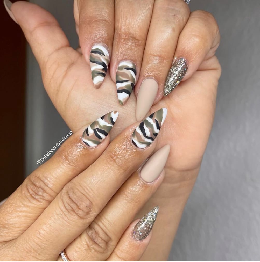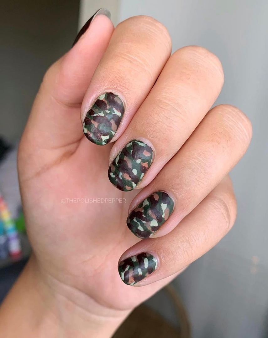 Вообще камуфляж разработан, чтобы слиться с окружающей средой, но с этим нейл-артом вас сразу заметят.