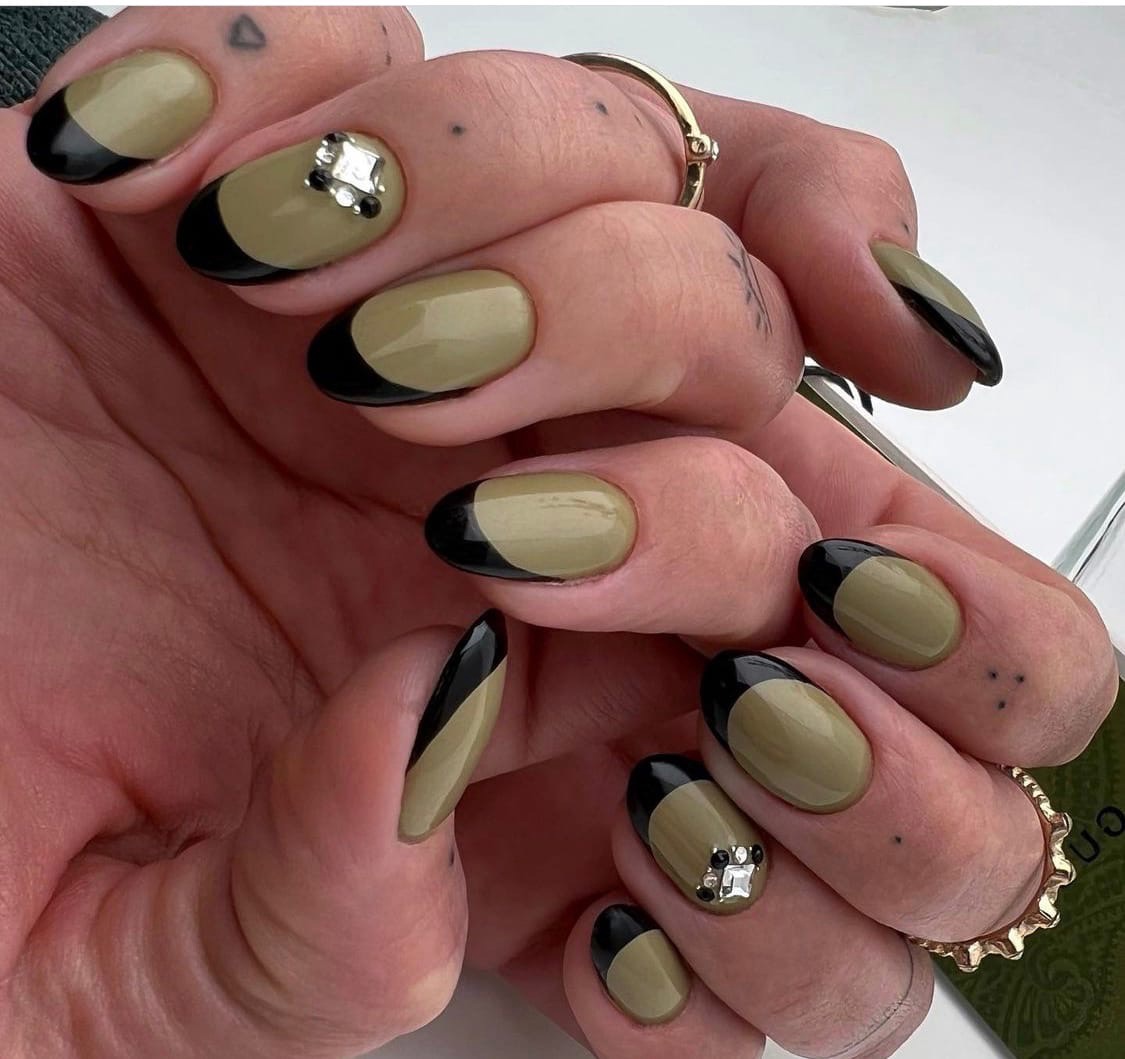 Минималистический подход - добавьте по краям ногтей милитари линии.