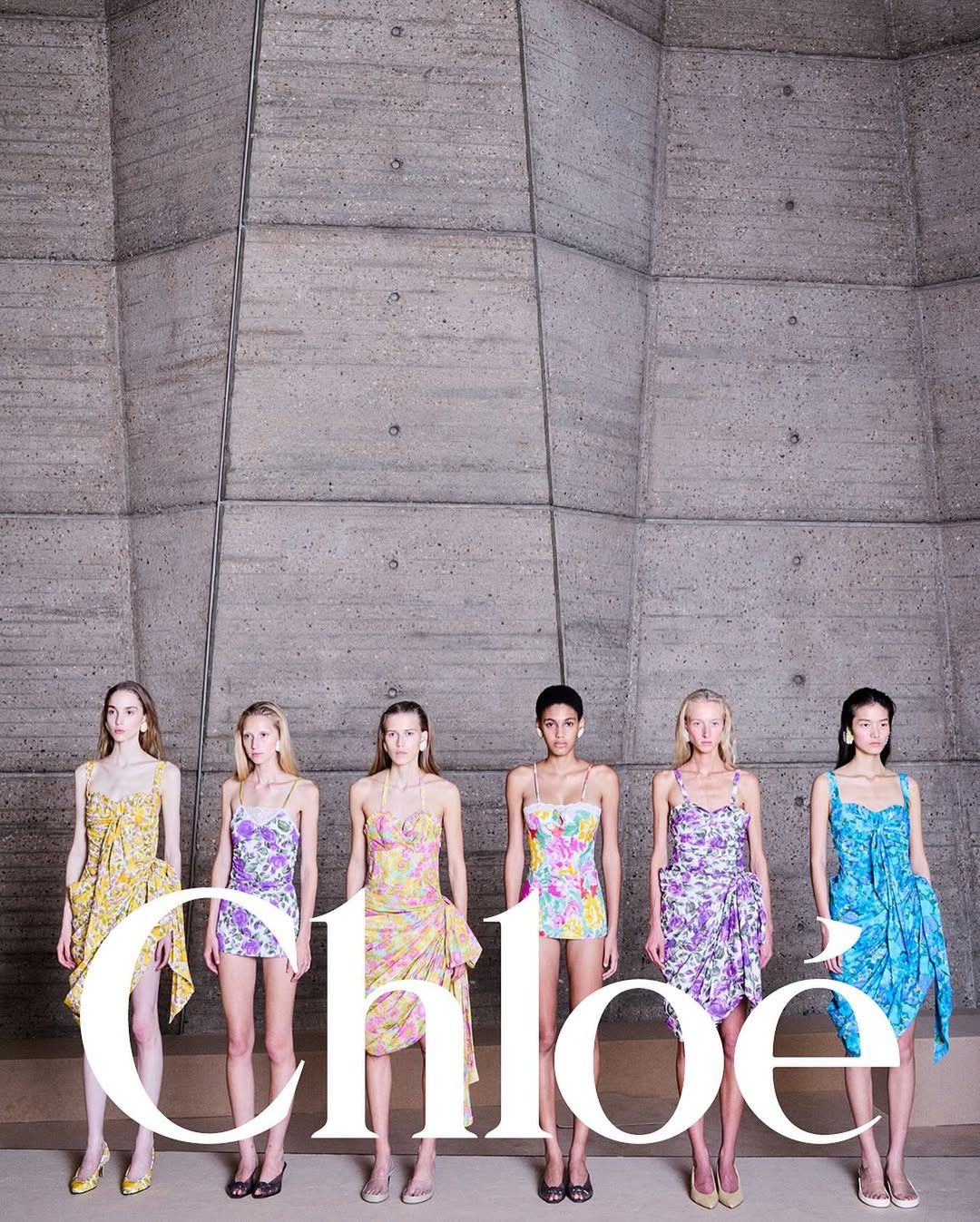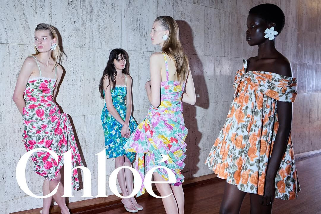 Нельзя не отметить, что героиня Chloé «расцвела» — и буквально. Винтажные флоралы из архивов Дома получили новое звучание. Крупные бутоны, будто написанные акварелью, распустились на драматичных платьях, дополненных драпировкой, и структурированных топах.
