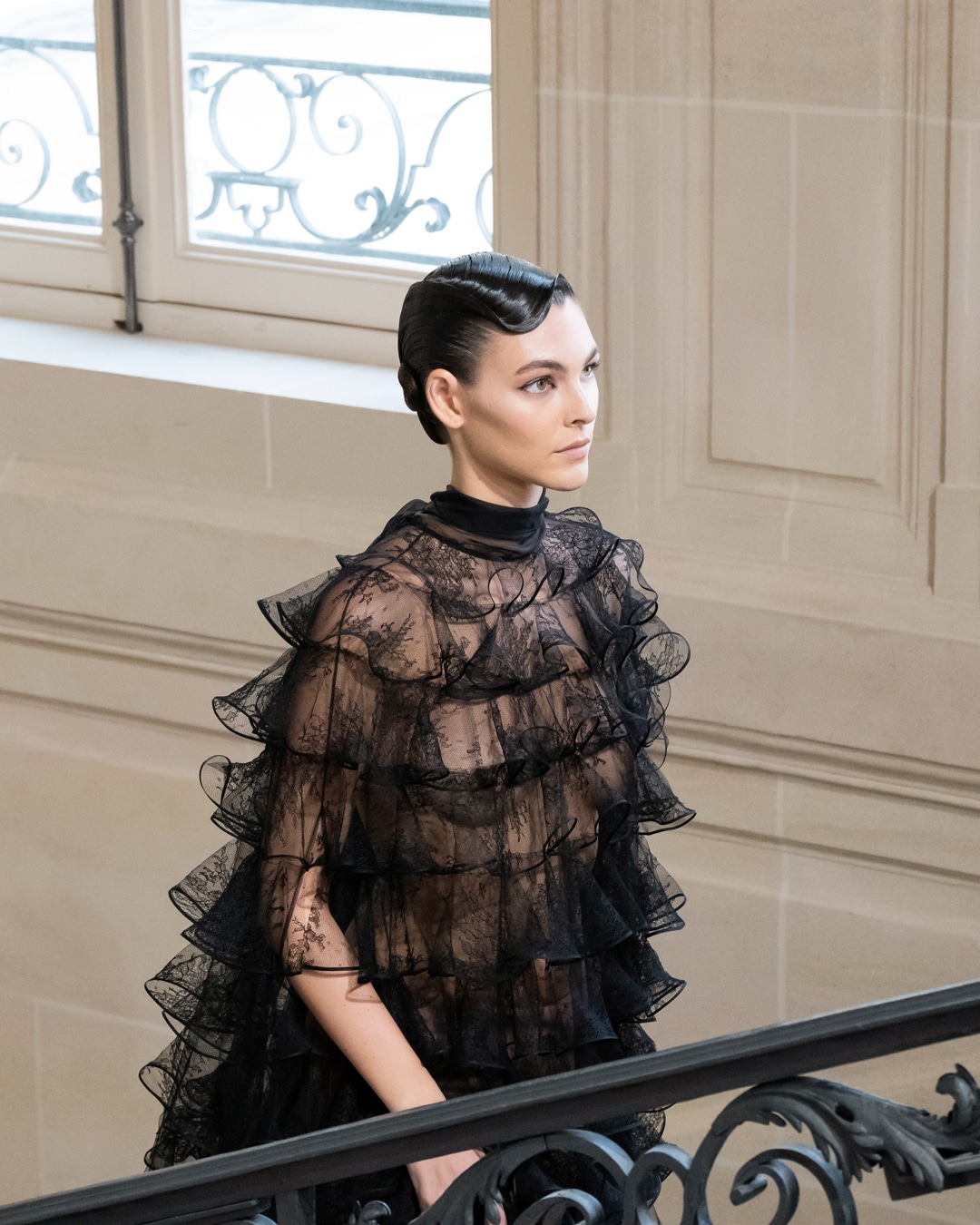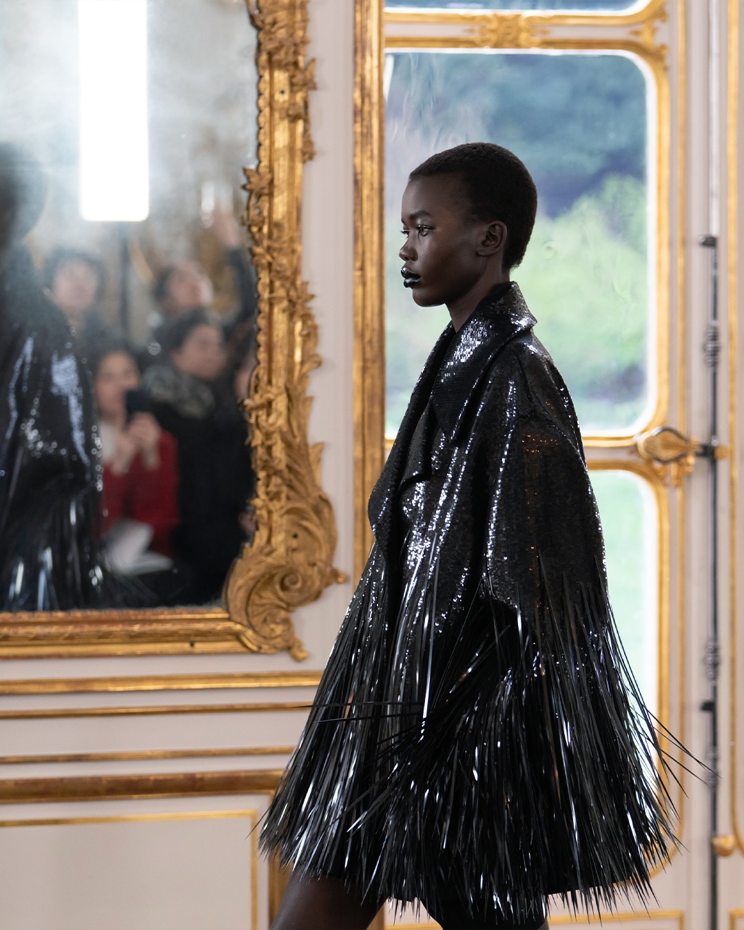 Многообразие текстур и силуэтов — все это компенсировало недостаток хроматической экспрессии. Наряду с этим Пиччоли погрузил зрителей в мир Valentino. В коллекции были пересмотрены коды бренда 1980-х годов. Культовые оборки и кружево украсили прозрачные блузки и легкие вечерние платья, пайетки и бахрома — пальто-бушлат, а на лакированных пальто «распустились» розы.
