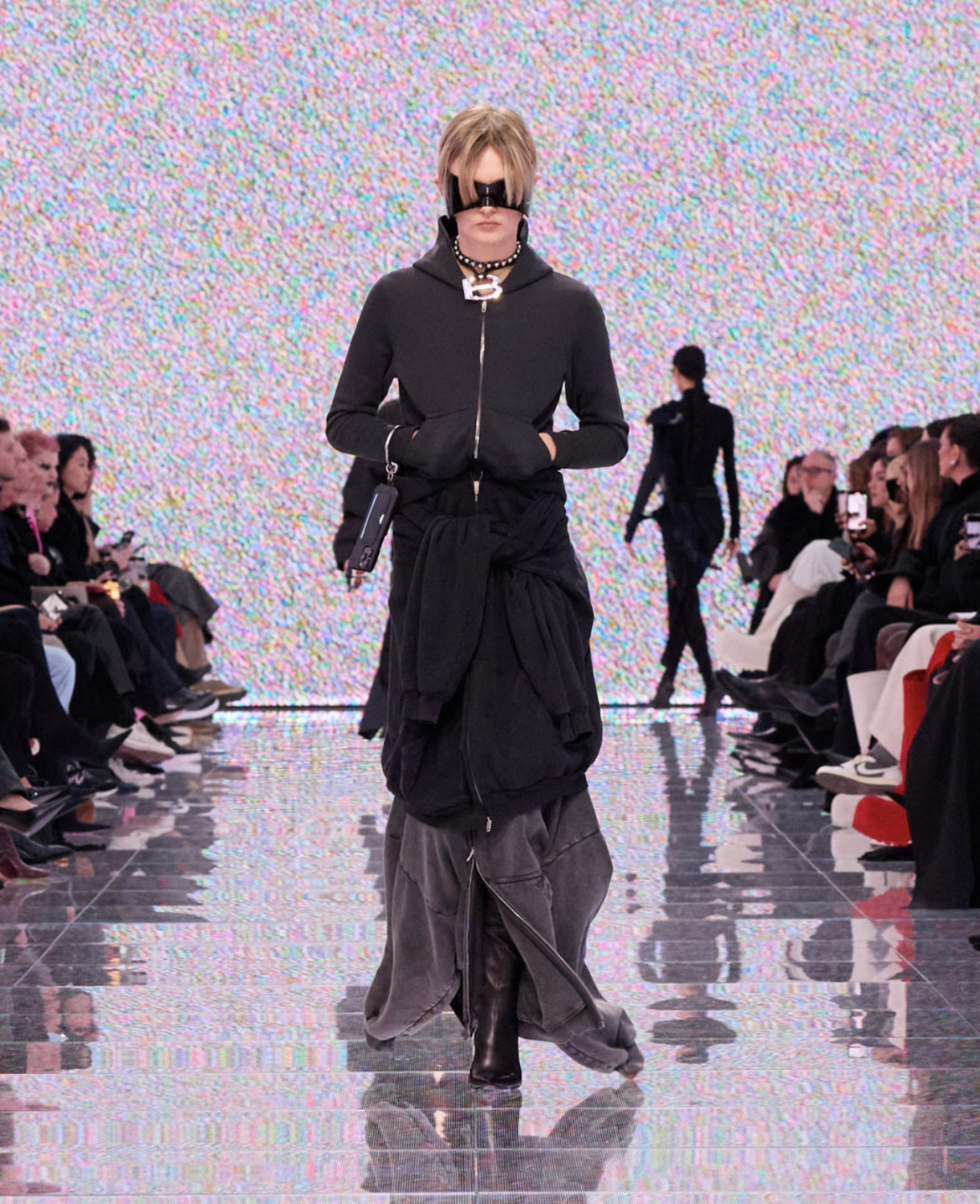«Что такое роскошь? Для кого я это делаю?», — спросил себя и зрителей в этом сезоне Демна Гвасалия с помощью аудиозаписи, прозвучавшей эхом на всей площадке. Вопросы были заданы не с целью получить ответ, а для того, чтобы подтолкнуть к личному размышлению.