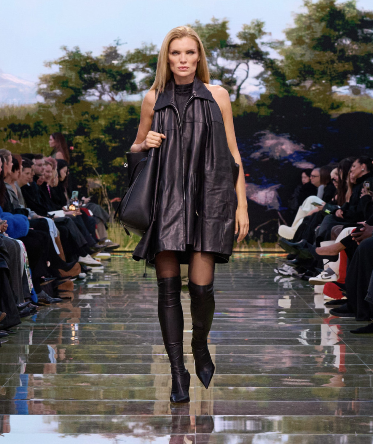 На этот раз Кейси Кадволладер черпал вдохновение в вампирическом гламуре 1980-х годов. Экстравагантность и драматизм — он решил вернуться к фундаментальной сущности Mugler, а именно: анатомии тела и сексуальности.