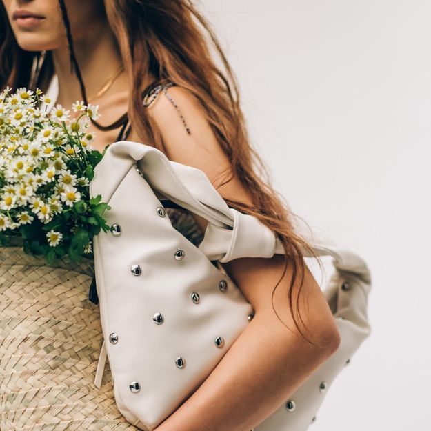 Главная новинка коллекции весна-лето 2021 от Maje – сумка Bow Bag с модульной ручкой в форме полумесяца, инкрустированная серебряными заклепками. Ее оригинальность заключается в возможности развязывать и завязывать ручки так, как вам захочется. Можно носить на плече, через плечо или на поясе. Bow Bag представлена в трех цветах: белом, розовом и черном.