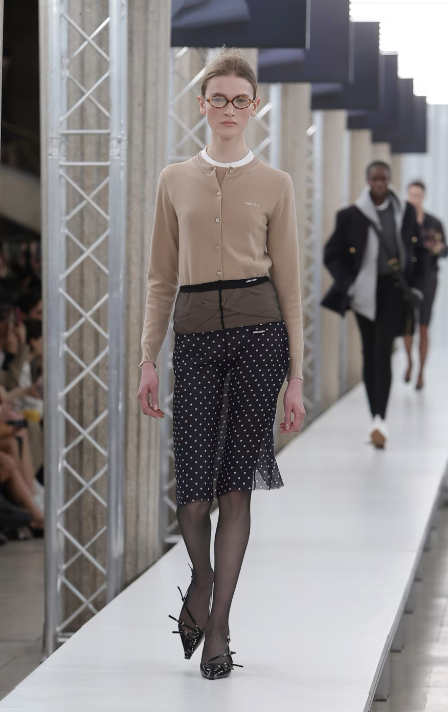 Смена курса от «небрежности» к более «структированному» образу была замечена еще на показах FW'22. Вместо сверкающих платьев для вечеринок и стрингов офисная одежда в стиле Y2K стала появляться на подиумах. Позднее свою лепту внесли и коллекции Miu Miu FW'23, Gucci Ancora SS'24 и Tom Ford SS'24, созданные новым креативным директором бренда Питером Хокингом.