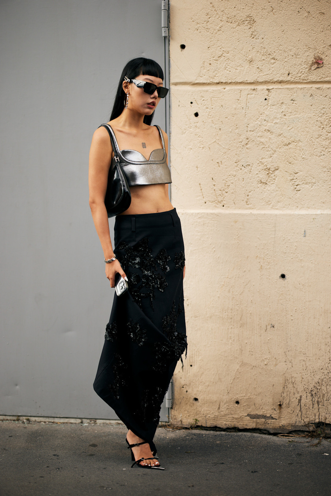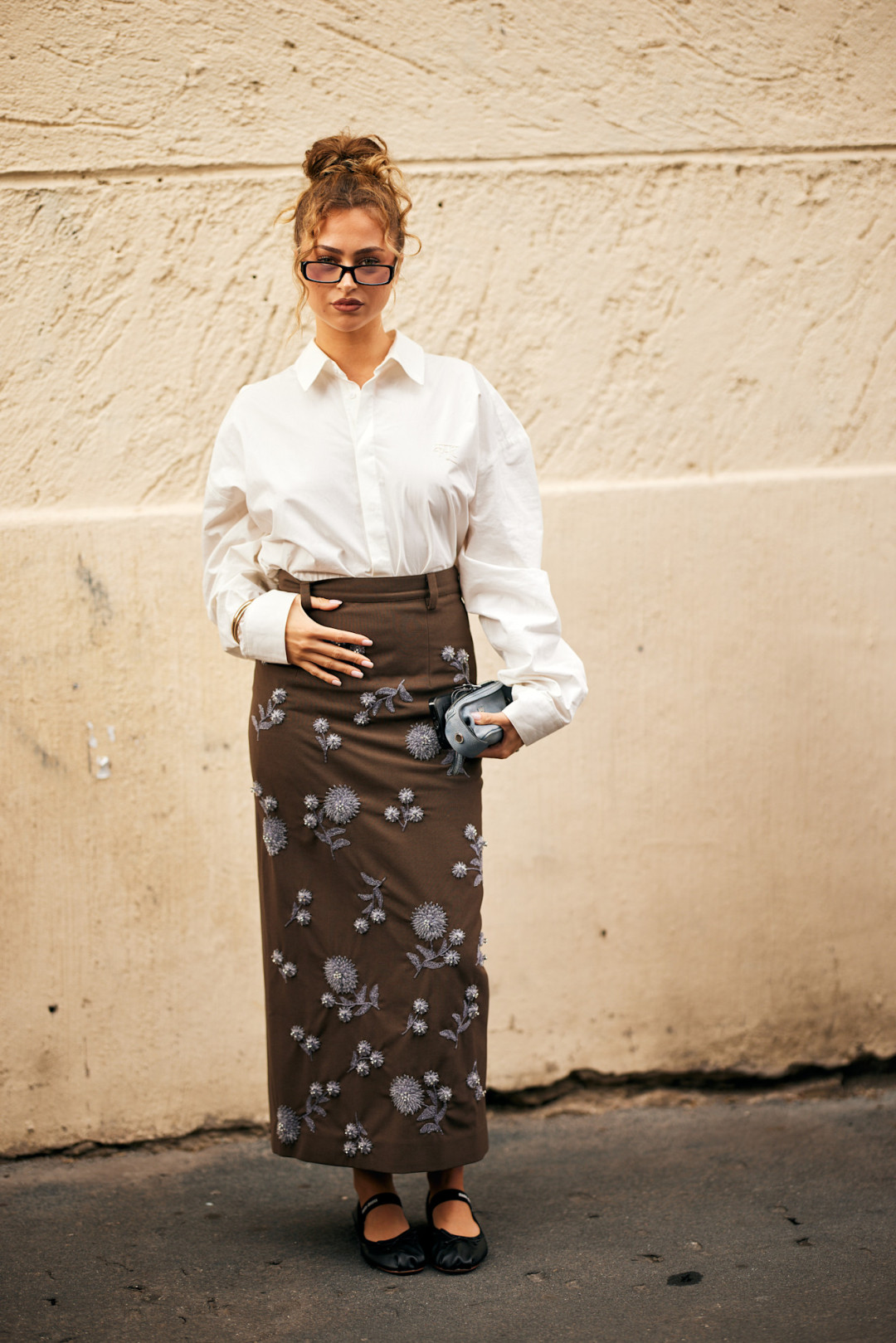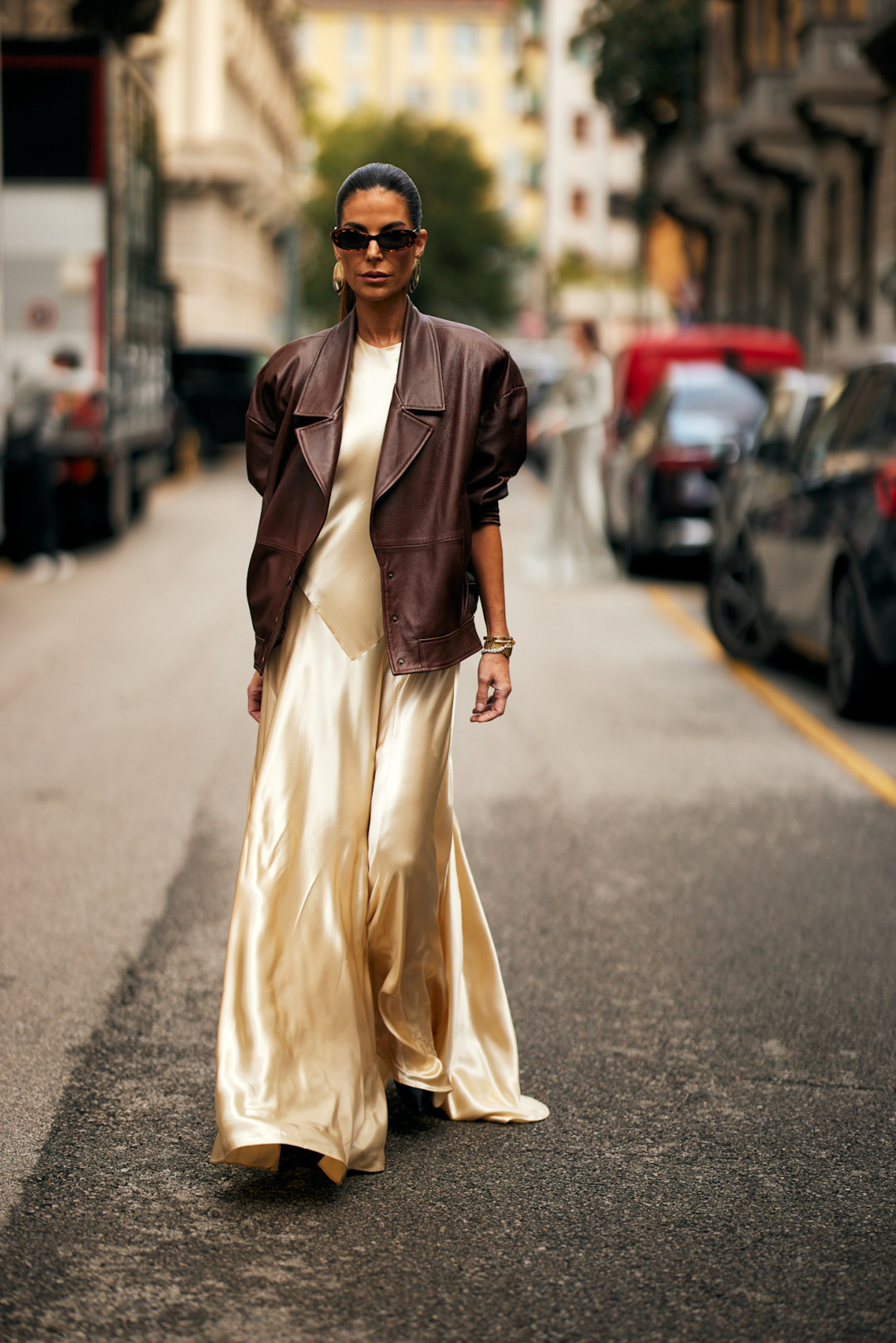 Невозможно пройти мимо игры с фактурами и силуэтами — именно она сделала стритстайл-хронику столь живой и запоминающейся. Среди фаворитов редакции — струящиеся, словно парящие платья, которые неожиданно соседствовали с грубыми oversize-куртками. Эти контрасты воплотили саму суть миланского стиля: элегантность здесь живет бок о бок с дерзостью, а традиции переплетаются с экспериментом.