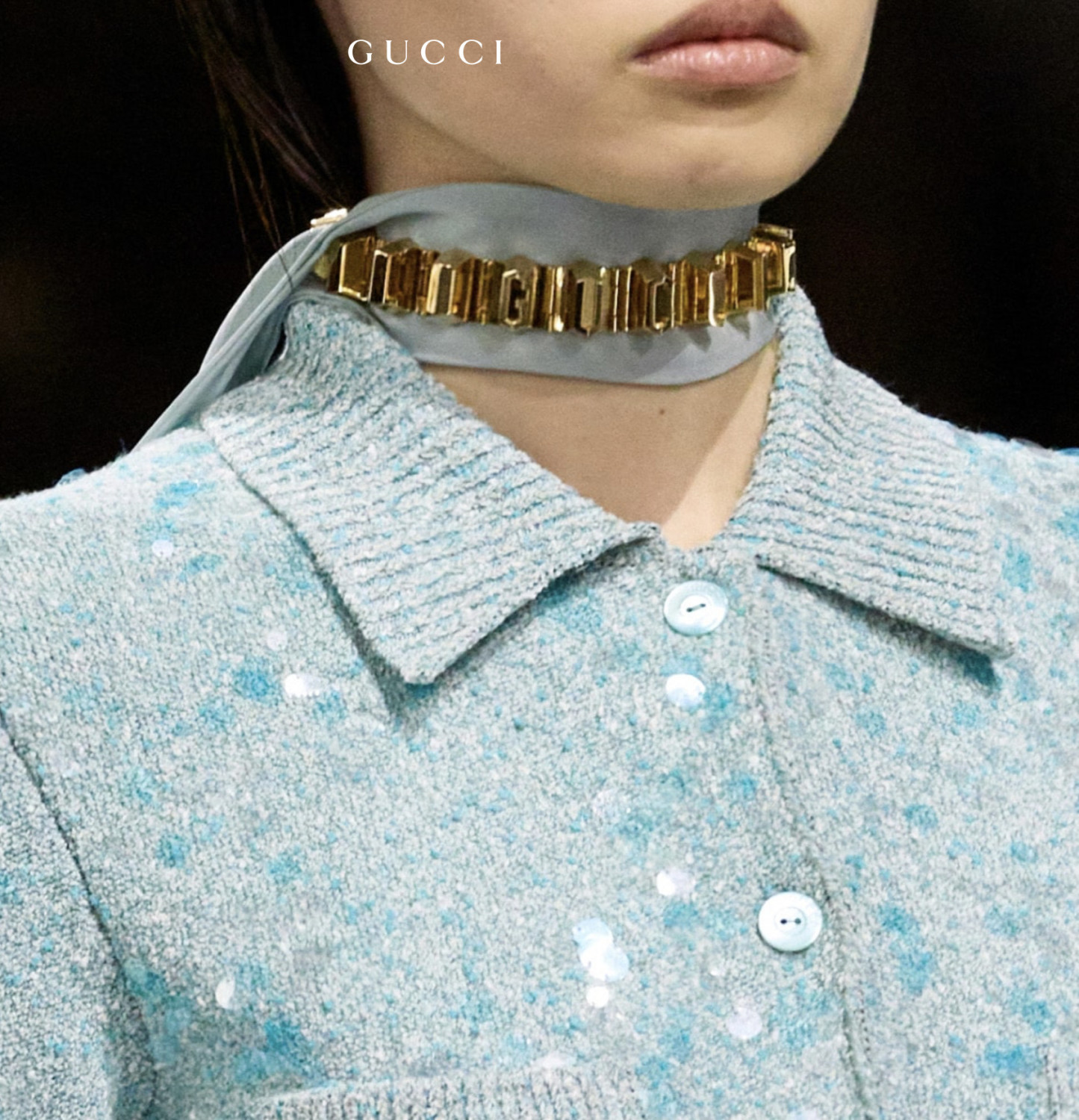 Чокеры возвращаются в этом году — и на этот раз совершенно в новом видении. На показе Gucci они были представлены в виде лент, украшенных металлическими деталями, что придавало им викторианский дух, а у Versace приобрели панковский оттенок. Особенно нам понравилась стилизация данного элемента с кружевными платьями и комплектами из трикотажа.