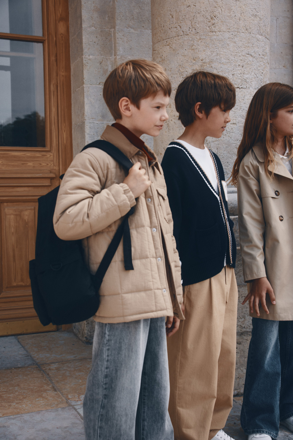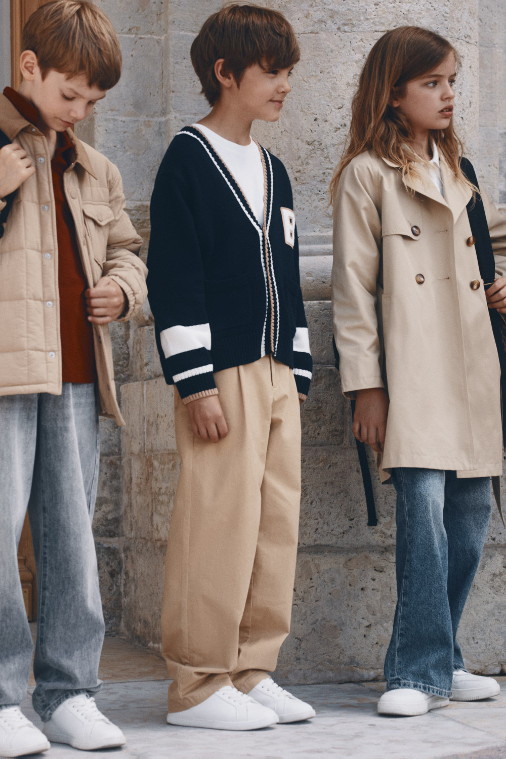 Говоря о материалах, при создании изделий использовались разнообразные ткани: хлопок, костюмная ткань, шерсть и трикотаж. Для девочек также предусмотрены акцентные детали, такие как вышивка, золотые пуговицы, нашивки со стразами и жемчугом. Эти элементы делают каждую вещь особенной, добавляя в образ нотки элегантности и шика. Модели для мальчиков, в свою очередь, отличаются забавными принтами с изображениями животных, полосками и патчами с буквами.
