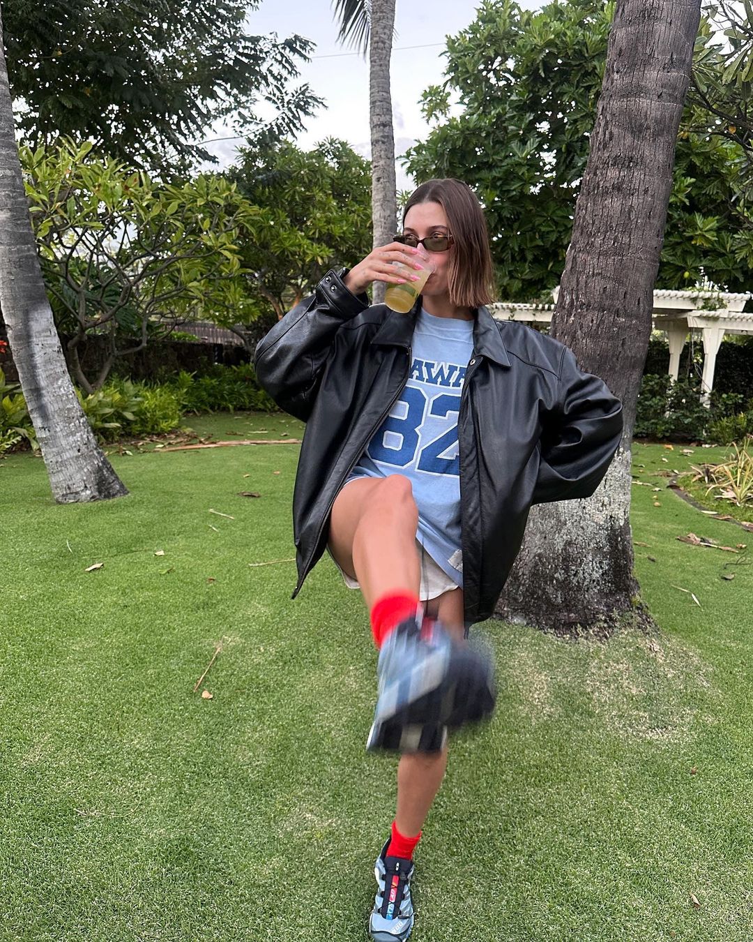 Кроссовкалар – Хейли Бибердің гардеробындағы нағыз мастхэв. Ол тіпті ең айқын емес модельді 1990-шы жылдардағы киім үлгілерімен шебер үйлестіреді. Жақында Хейли достарымен бірге көңіл көтеріп жүрген атмосфералық суреттермен бөлісті. Джастин Бибердің әйелі өзінің сүйікті винтажды курткасымен, көк түсті Springy Jeans футболкасын және басты элемент – Salomon XT-6 кроссовкаларын керемет үйлестірген.