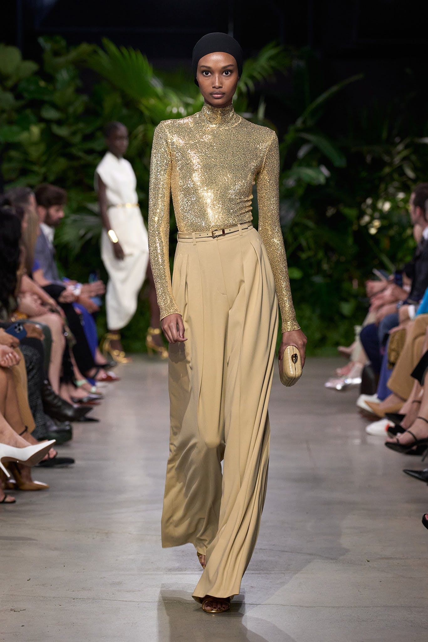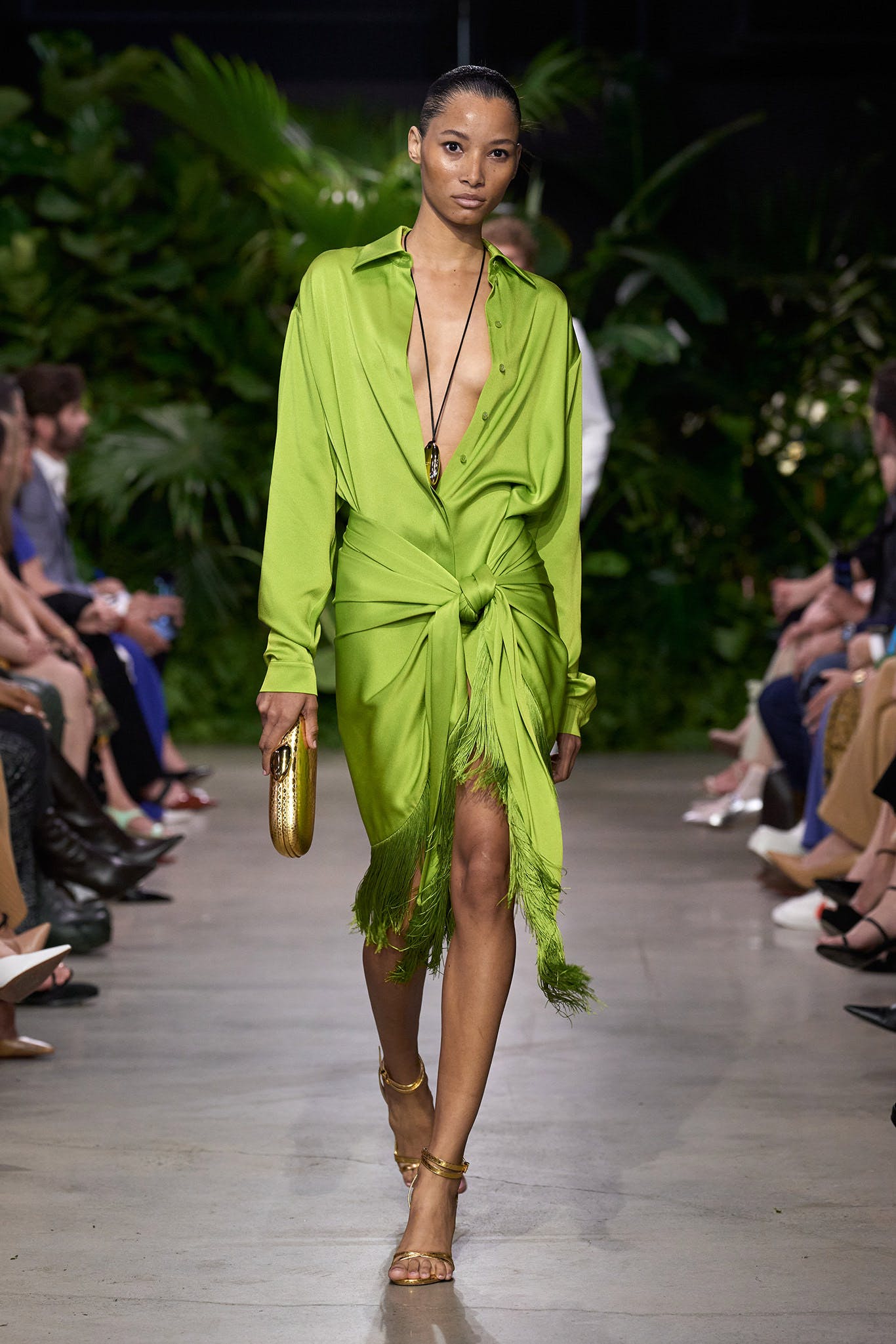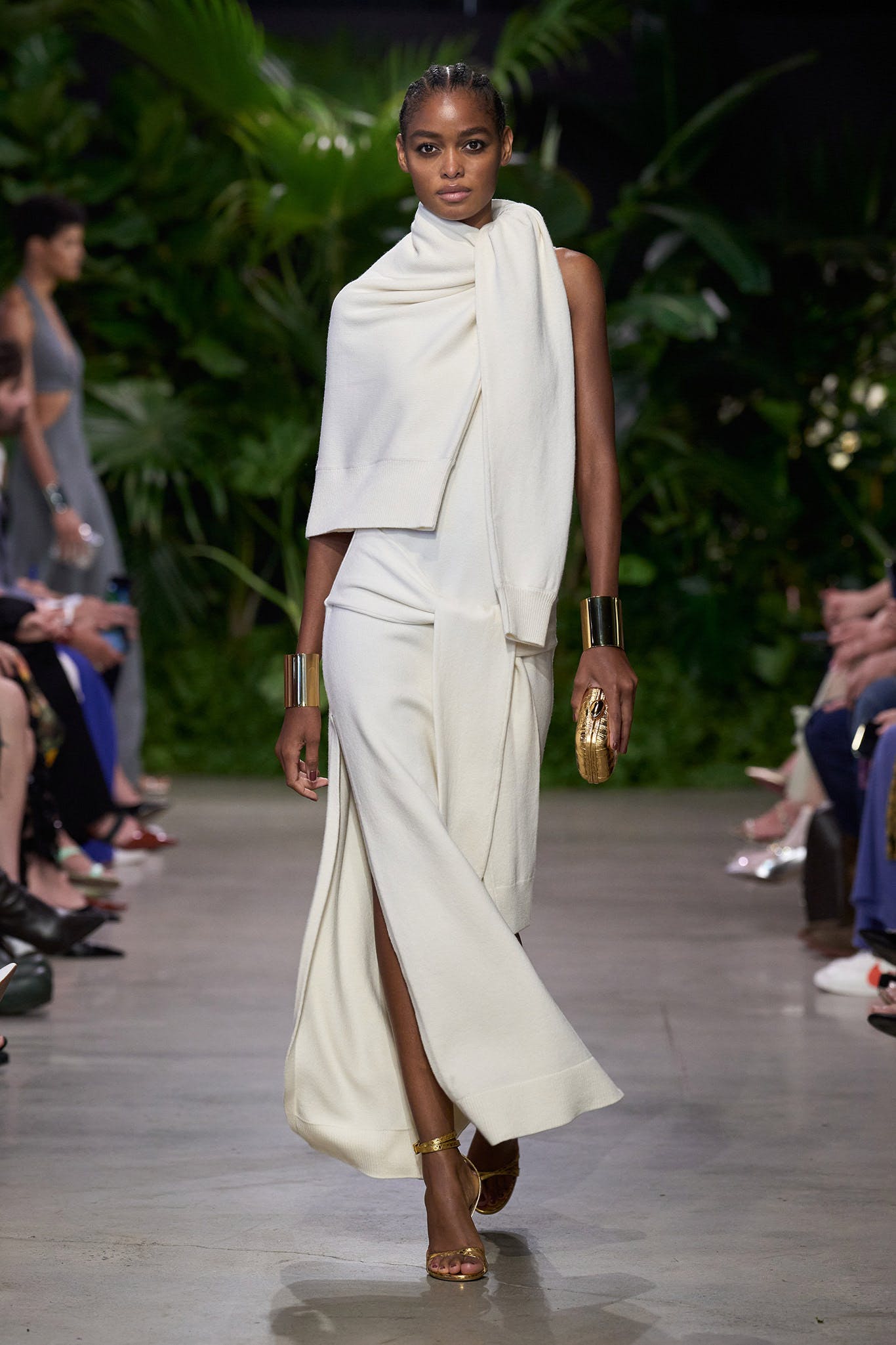 Подиум полный зелени и гитарист, исполняющий самые громкие хиты – пляжный курорт добрался и до центра Нью-Йорка на показе Michael Kors. Полупрозрачные льняные брюки в сочетании с боди на одно плечо, блейзеры накинутые поверх драпированных платьев и блузок – все это органично объединило две любви Корса: пляжные курорты и мегаполисы. В коллекции, включающей несколько монохромных белых и черных образов, яркие красные, синие, розовые и зеленые цвета привносили всплески красок.