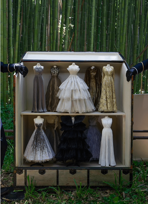 На видео модели предстают героинями лесной сказки: нимфами, русалками, статуями. Для каждой из них – свой наряд. Марии Грации Кьюри удалось создать свой собственный Théâtre de la Mode при помощи 37 миниатюрных манекенов, одетых в кутюрную коллекцию.