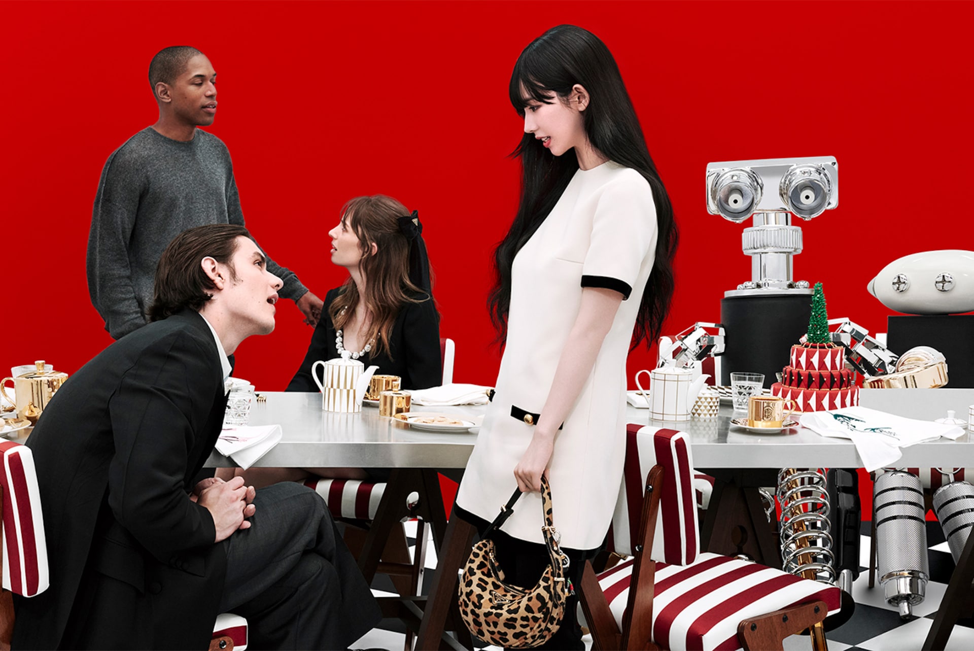 За элегантной трапезой встретились не просто гости, а ключевые фигуры современной культуры: американский актер Келвин Харрисон-младший, певица и актриса Майя Хоук, икона k-pop Карина из aespa и британский актер Луис Партридж. Компанию им составляют культовые роботы Prada Trick.