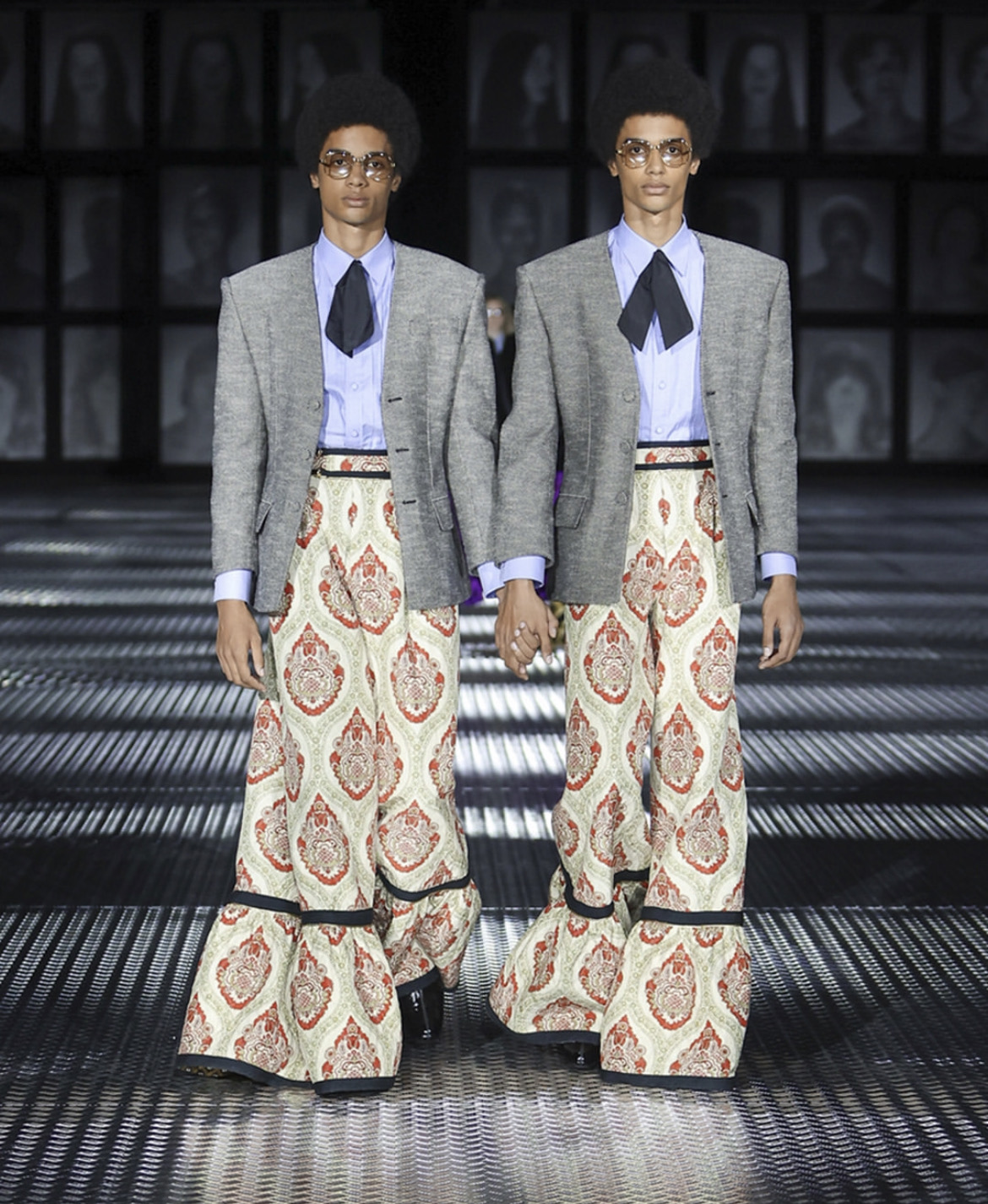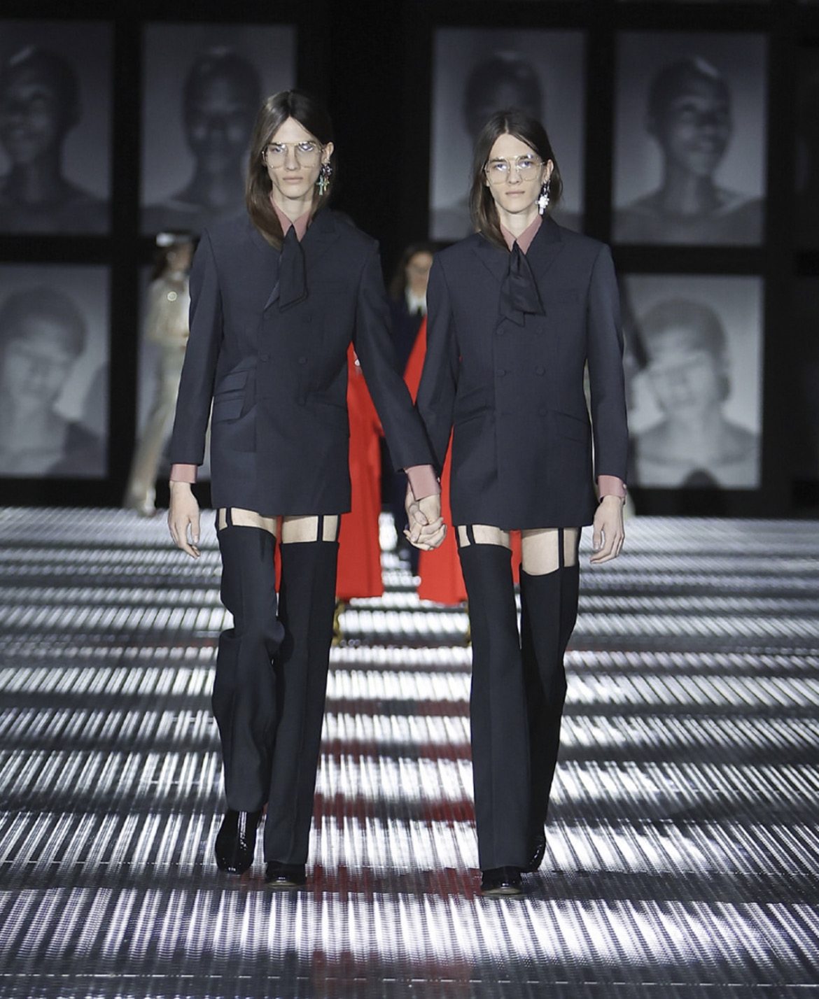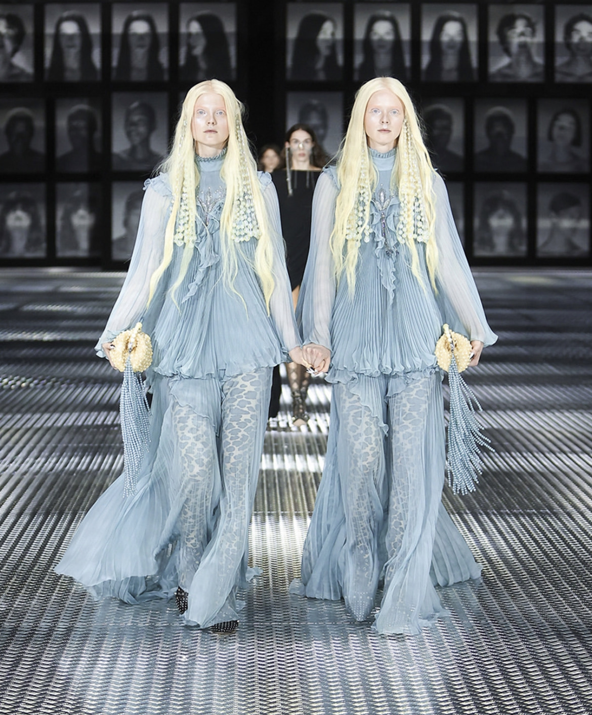 Известный своими фантастическими идеями Алессандро Микеле вновь произвел фурор. Для показа коллекции Twinsburg он пригласил однояйцевых близнецов. Вдохновением для шоу послужили "мамы" Микеле - в детстве он был уверен, что у него их две. Именно им - матери Эральде и ее сестре-близнецу Джулиане - он и посвятил показ.
