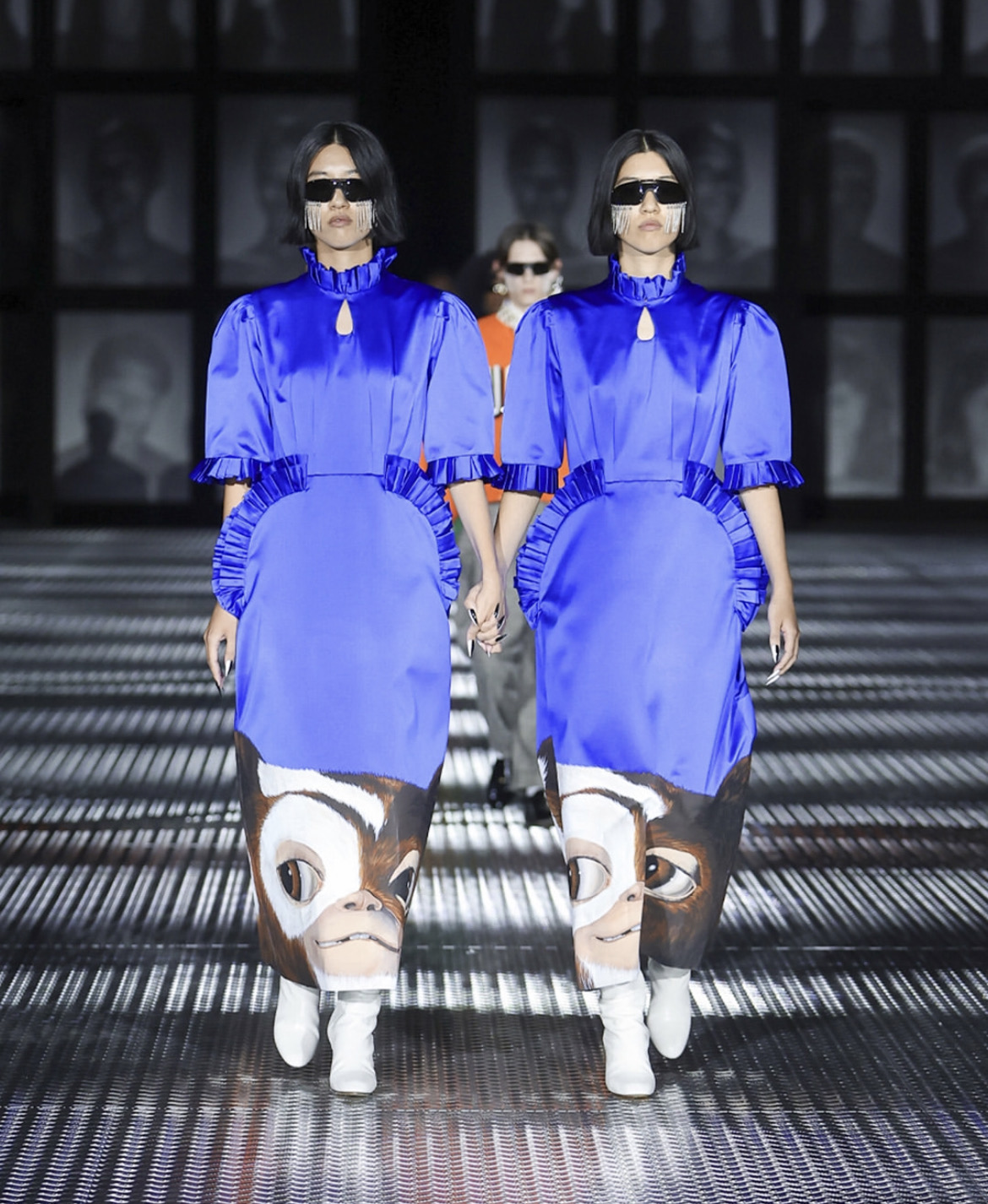 Вместе с тем, в коллекции наблюдается ностальгия по детству - героем показа стал гремлин Гизмо. Его можно было разглядеть на подоле платьев, пушистых сандалиях, рюкзаках и сумках. Наверное, сейчас все мы мечтаем обратиться в беззаботного ребенка.