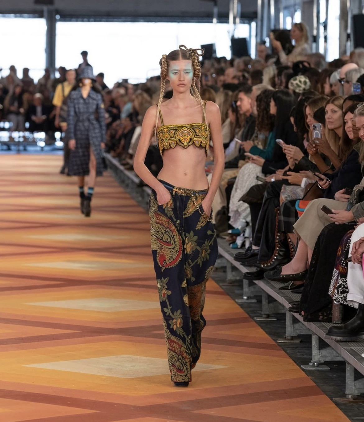 Создав дюжину образов из денима, а не из всемиузнаваемой ткани Etro, в дебютной коллекции Де Винченцо сразу же сбросил десятилетие с бренда.
