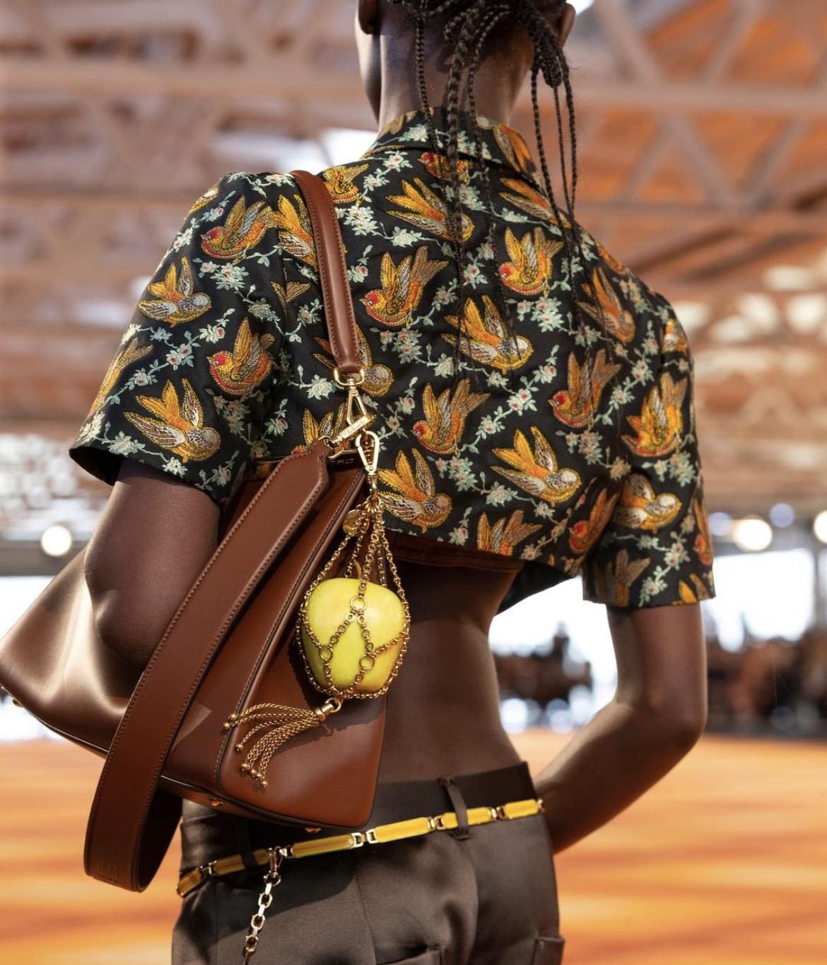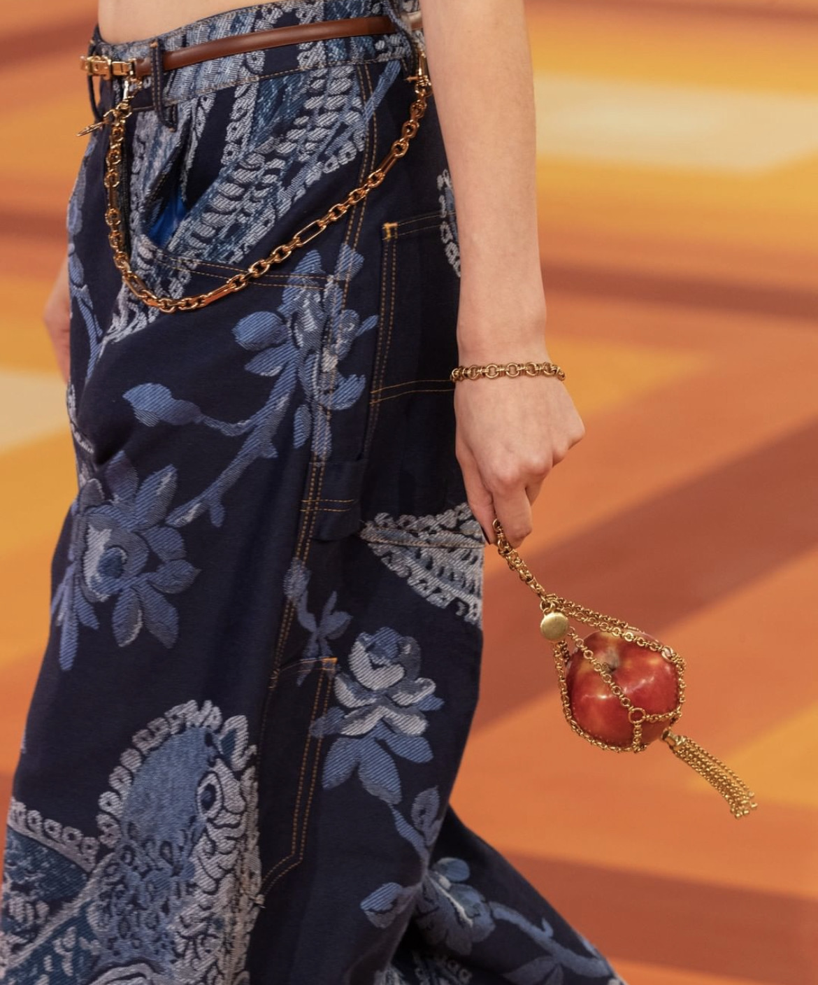 «Одно яблоко в день – и врач не нужен» - поговорка, которая знакома каждому из нас с детства. Кажется, что Марко особенно верен ей - он представил золотую сумку для яблок. Аксессуар повседневным, конечно, не назовёшь. Остается лишь гадать, что хотел сказать нам дизайнер. Ведь яблоко символизирует как созидание, так и искушение с искуплением.