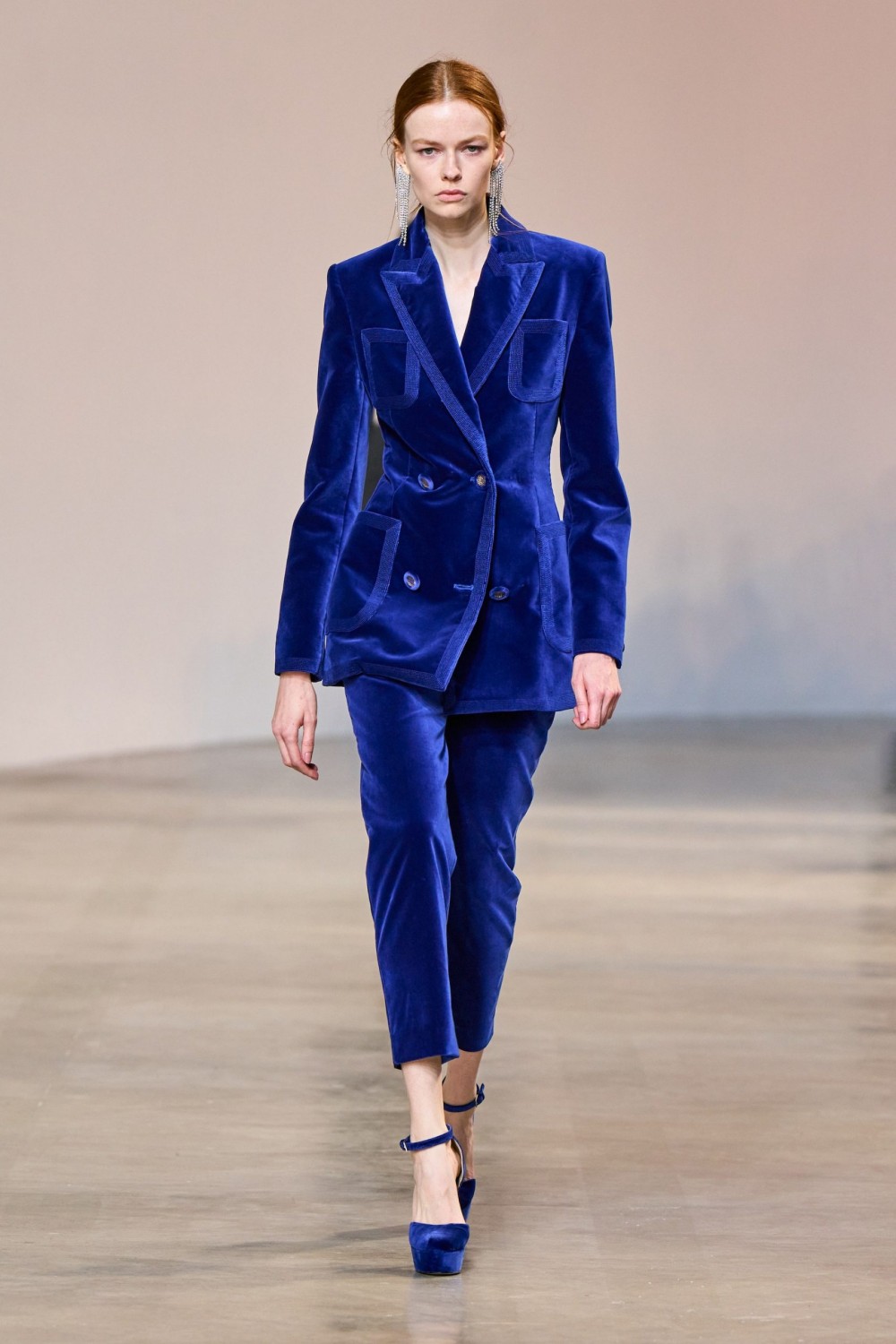 Брючный костюм непременно станет одним из главных трендов в осенне-зимнем сезоне. Интерпретации от Элли Сааба: из бархата с укороченными зауженными брюками и удлиненным пиджаком или с пайеткамии расклешенными брюками и пиджаком с ярко выраженной талией.