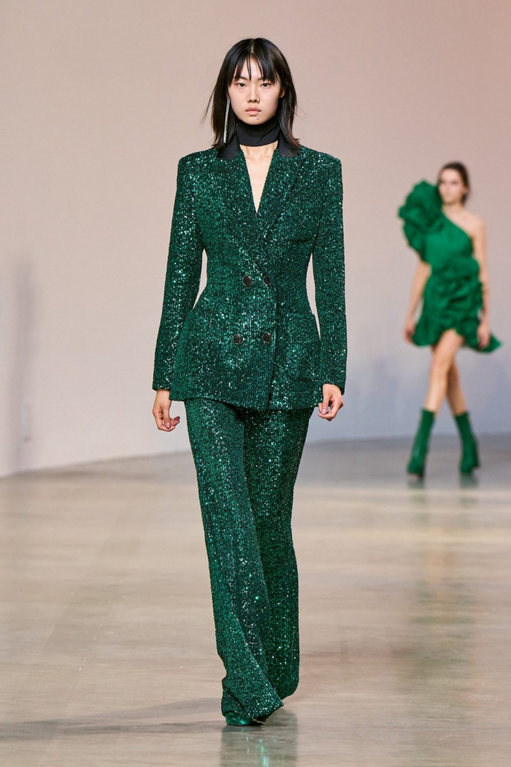 Мастерство кутюрье с первой секунды чувствуется в новой коллекции прет-а-порте от Elie Saab сезона FW22. Роскошные наряды от ливанского дизайнера с обилием блеска, плиссе, оборок и перьев излучают праздничное настроение.