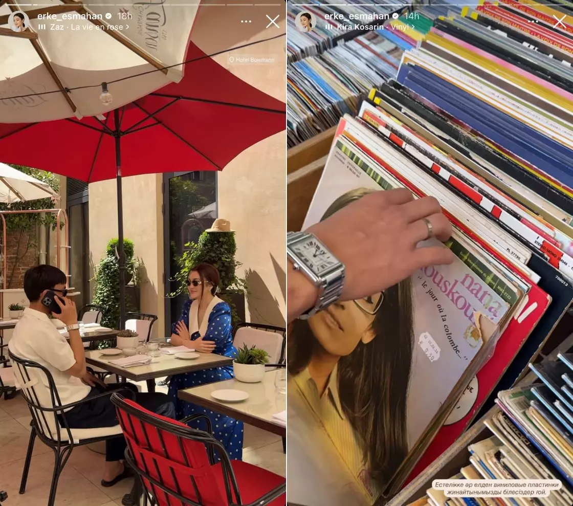 Осыдан кейін ерлі-зайыптылар қонақүйдегі жайлы жазғы кафеде тамақ ішіп, винтажды винил жазбаларын сататын дүкенге кірді. «Естелікке әр елден винил пластинкаларын жинайтынымызды білесіздер ғой», — деп жазды Ерке.