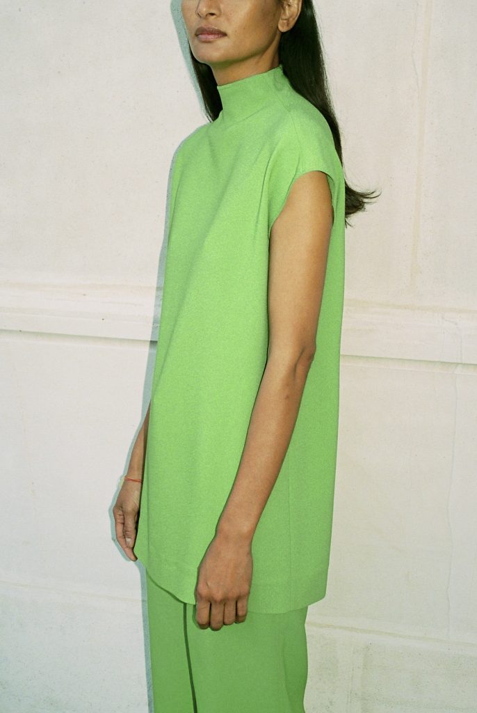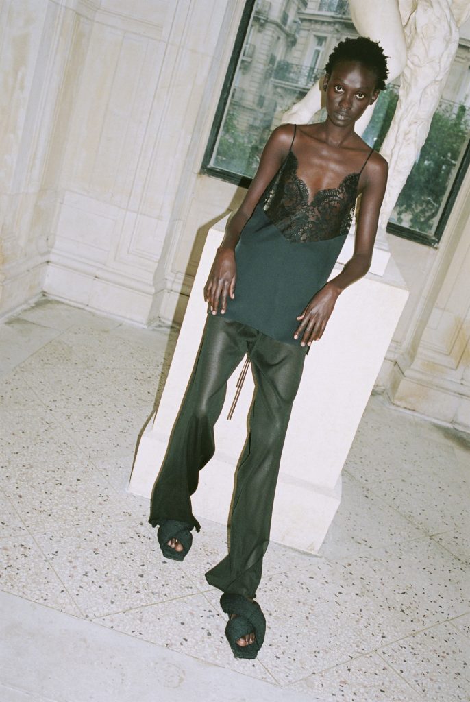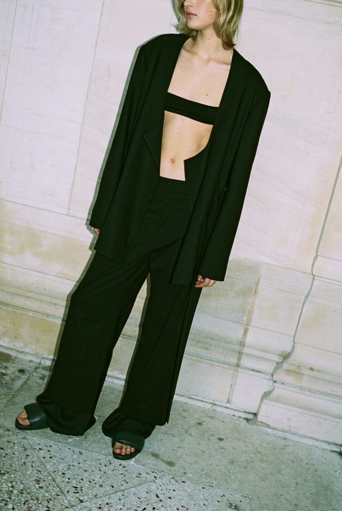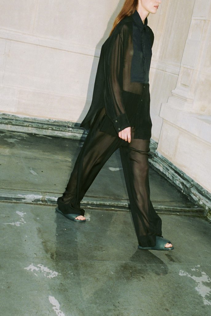 Монохромные костюмы предлагают мощные контрасты шерсти с прозрачными тканями, а драпировки на изделиях образуют разные силуэты, определяемые телом. Отдельно следует отметить рубашки oversize, которые присутствуют в разных вариациях в коллекции и непременно станут бестселлером в весенне-летнем сезоне.