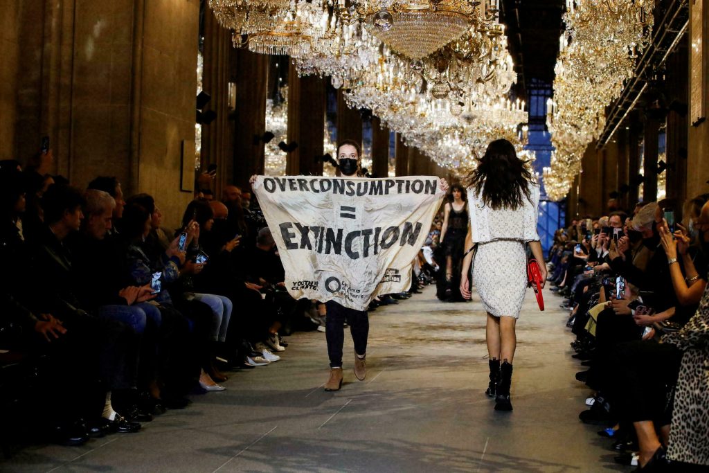 Одна из ведущих коллекций Парижской недели моды была внезапно прервана климатическими активистами групп Amis de la Terre France, Youth for Climate и Extinction Rebellion. Нескольких еще вначале охрана с легкостью смогла остановить, но девушке удалось вырваться на подиум с плакатом «Чрезмерное потребление = вымирание», тем самым вызвав ажиотаж у публики. Главной целью перфоманса было сосредоточить внимание на проблеме чрезмерного потребления, которая остро стоит в наши дни.