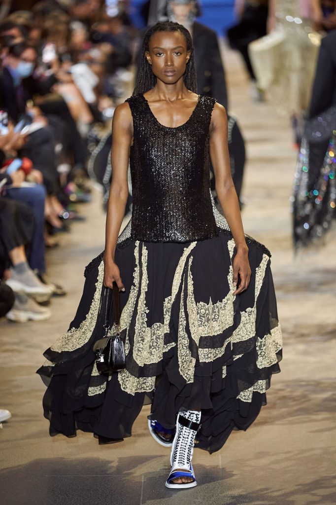 Если вернуться к коллекции, то креативный директор бренда Louis Vuitton Николя Жескьер приглашает нас на «грандиозный шар времени», где встречаются поколения. Изделия сочетают в себе элементы футуризма с современностью и одновременно делают отсылку к прошлой эпохе.