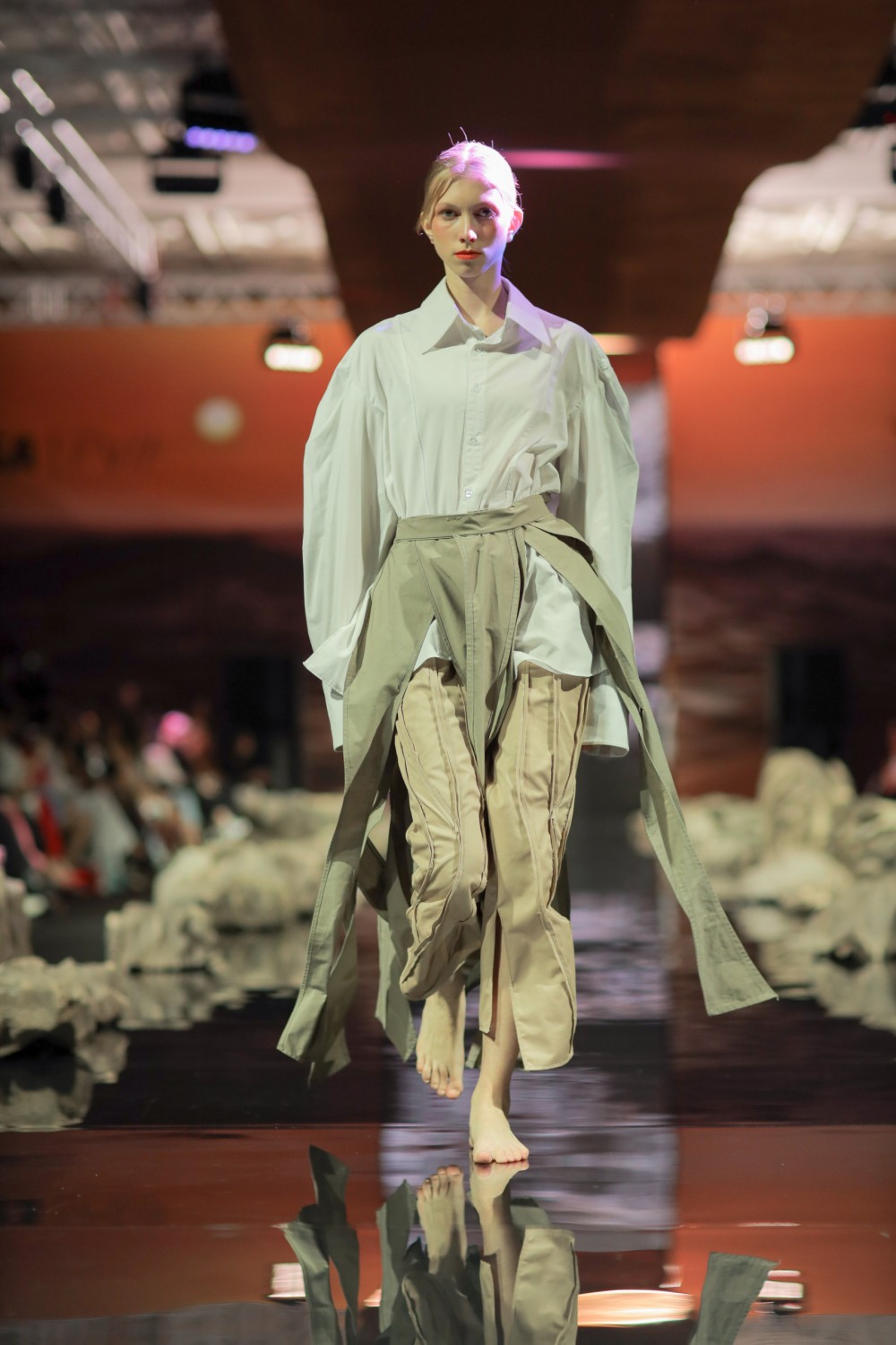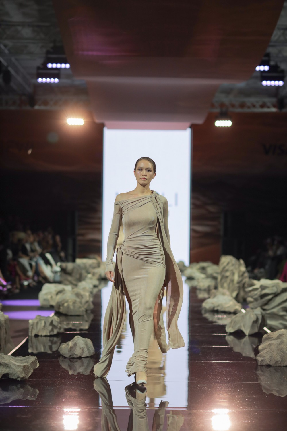 В коллекции особое внимание уделено этнике: декоративные элементы — қошқар мүйіз — бараньи рога, символизирующие жизненную силу, благодать и достаток, присутствовали как в нарядах, так и в стайлинге.