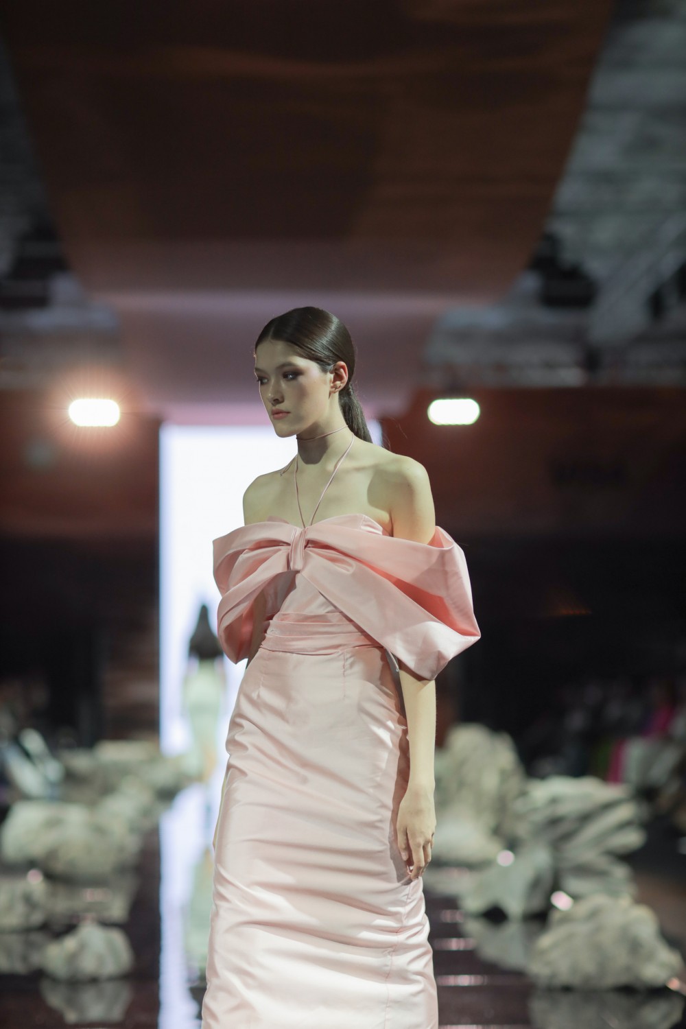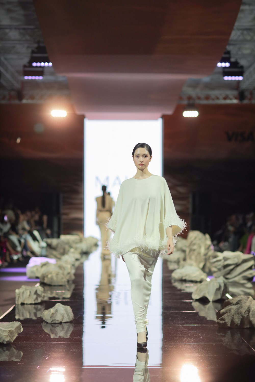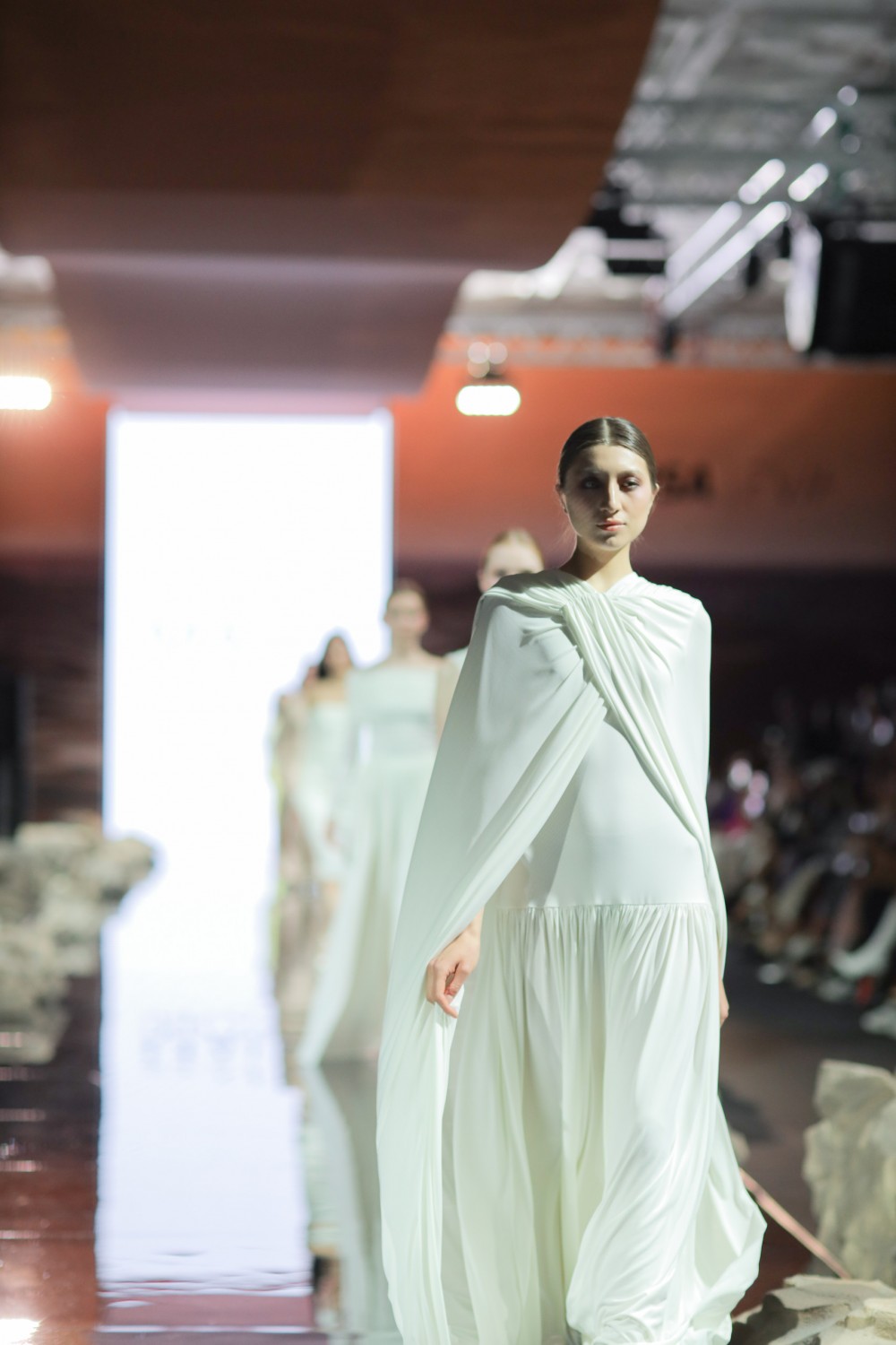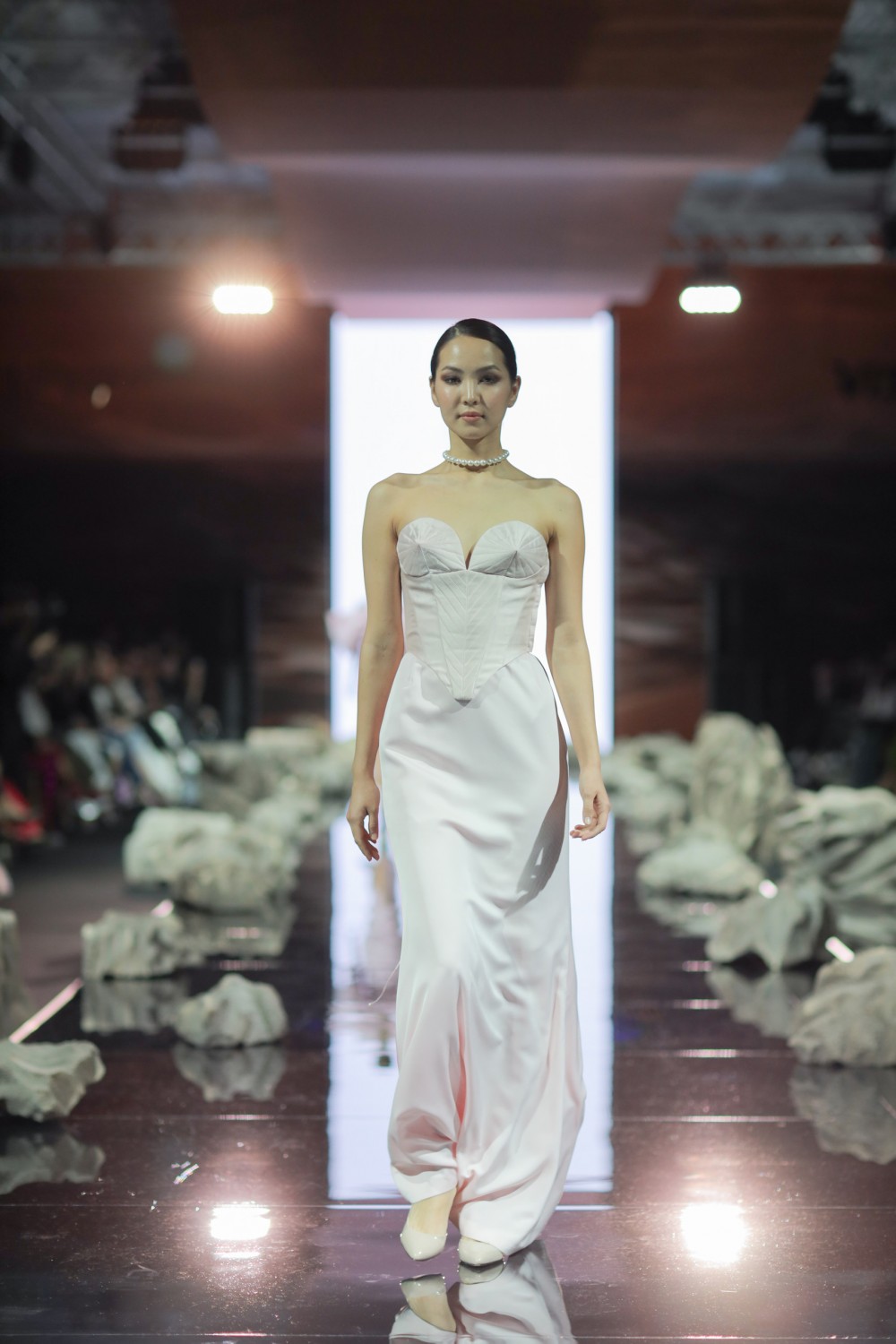 «Можно пошить платье, а можно пойти дальше и подарить женщинам мечту о красоте», — заявляет основательница бренда Маншук Куанышева. Более 10 лет казахстанский бренд Malli создает по-настоящему вневременную классику, а именно женственные и утонченные наряды, которые придутся по вкусу современной моднице. Показ начался в полной темноте — его открыла модель в белоснежном кейпе, словно «рыцарь света», осветила подиум своим присутствием.