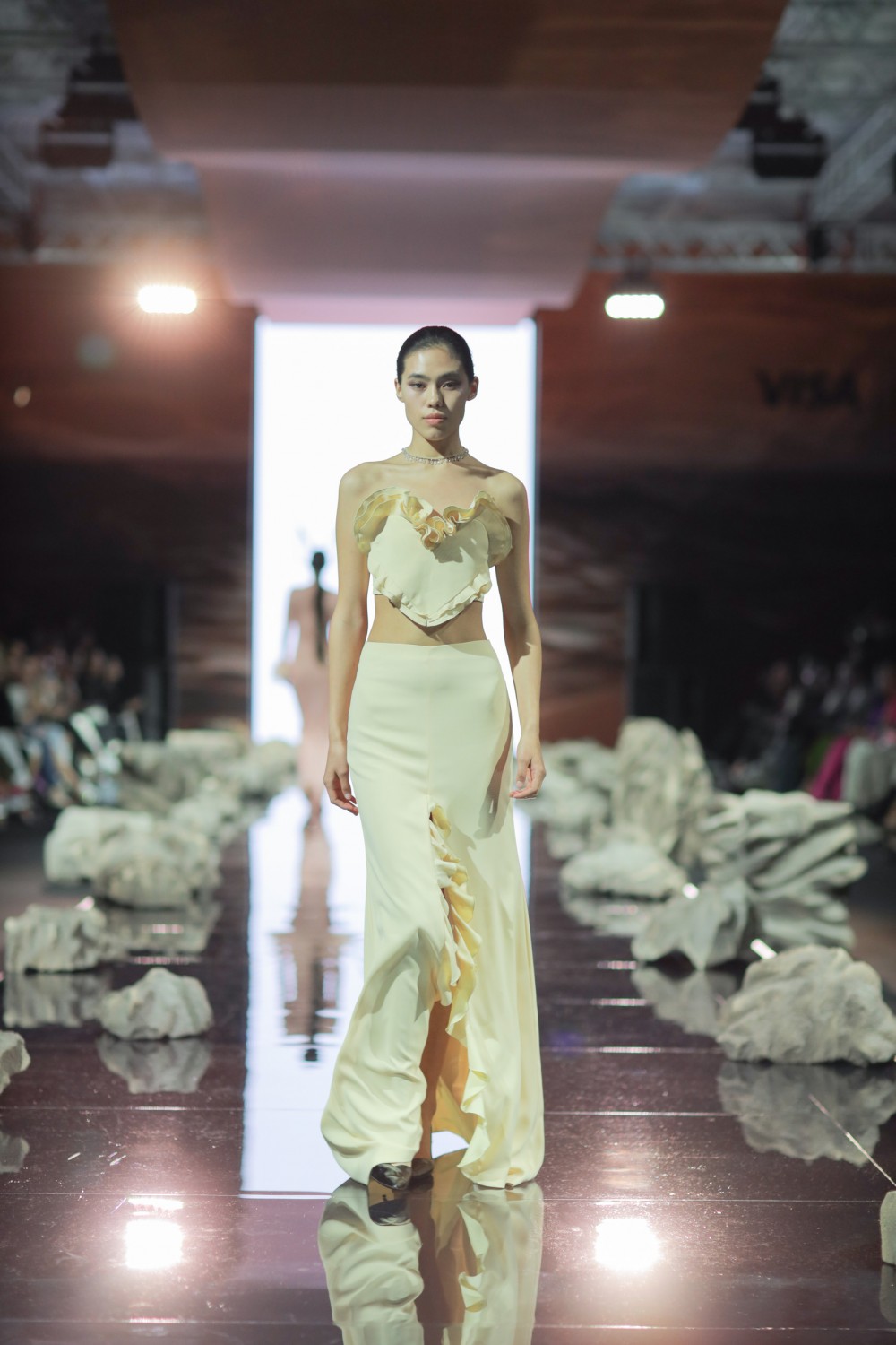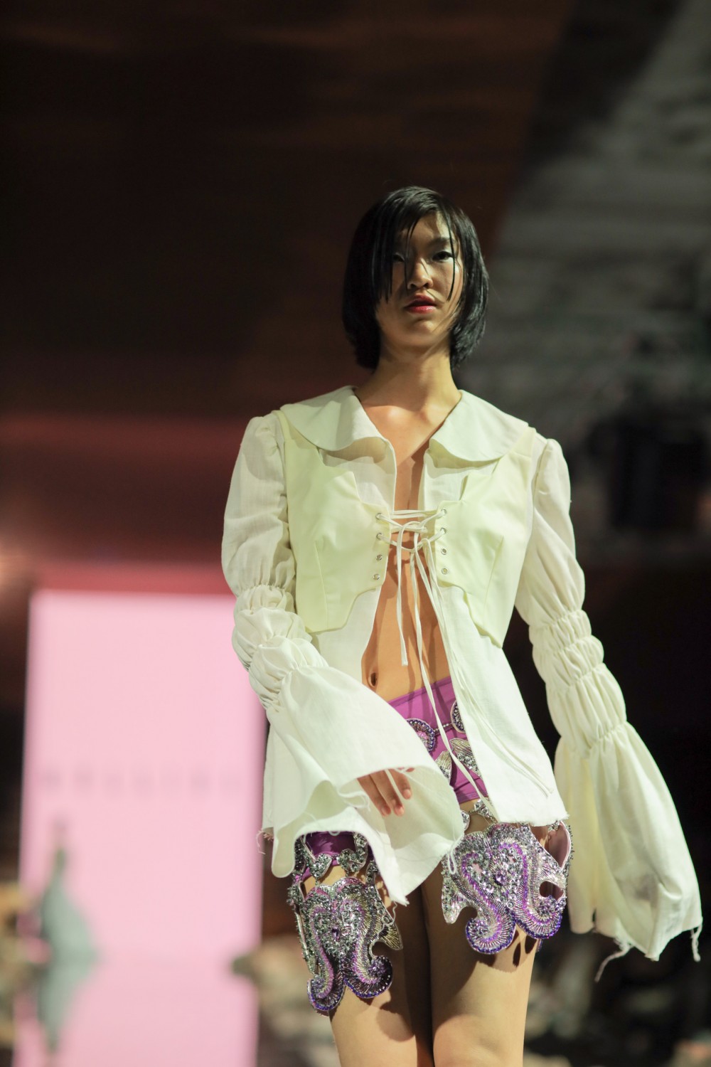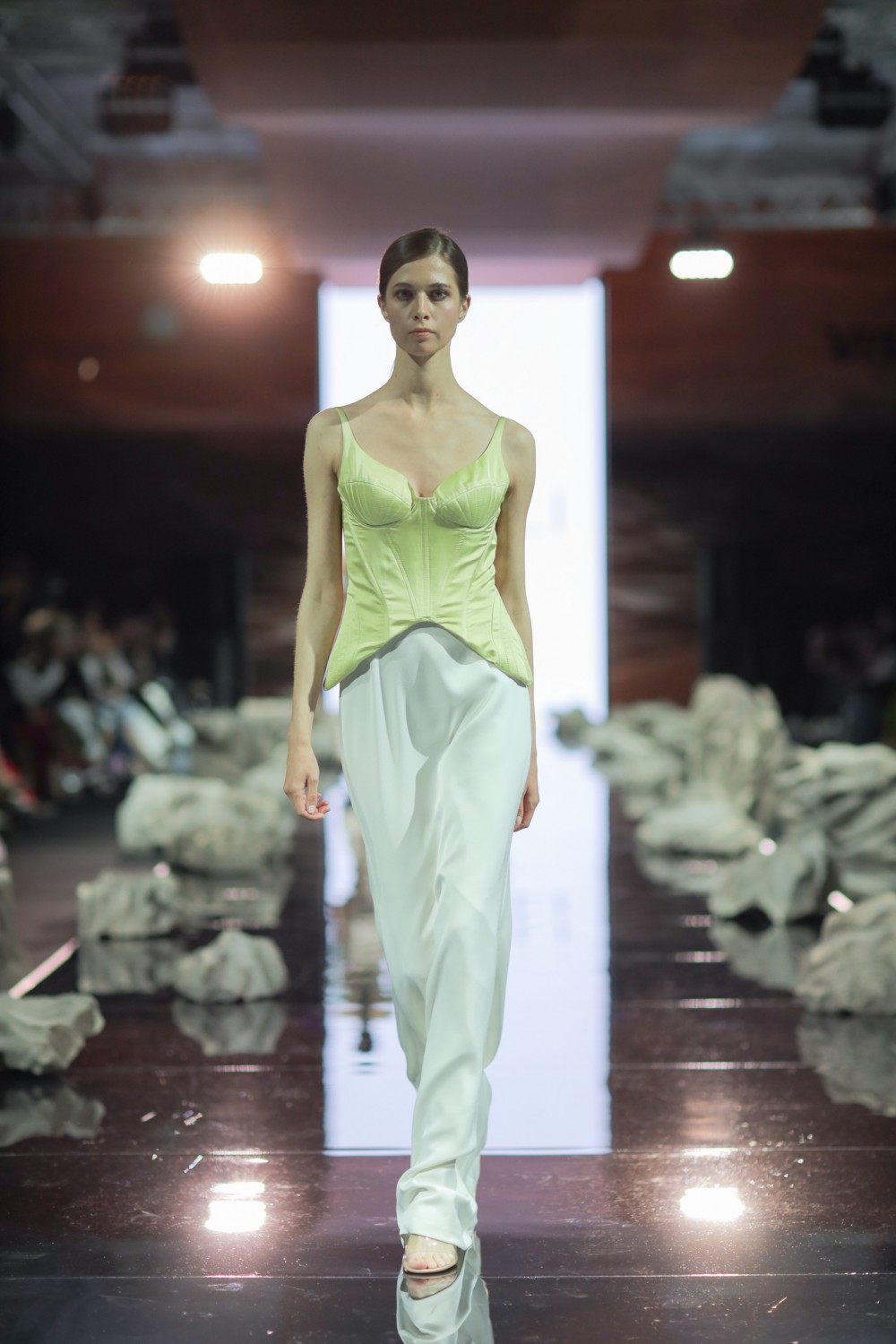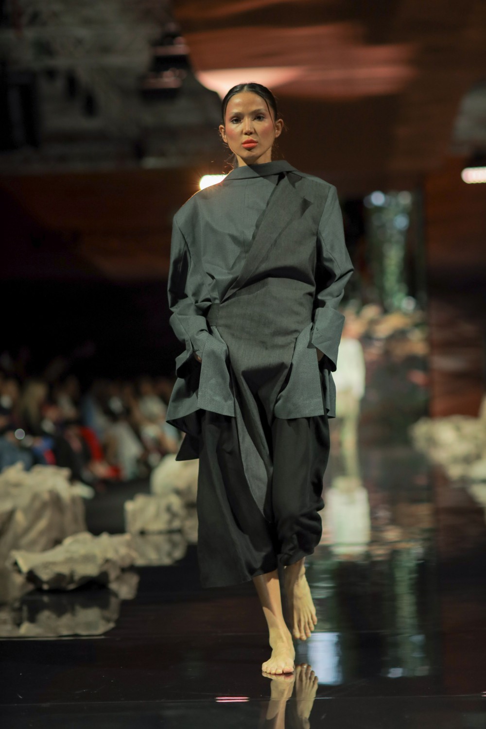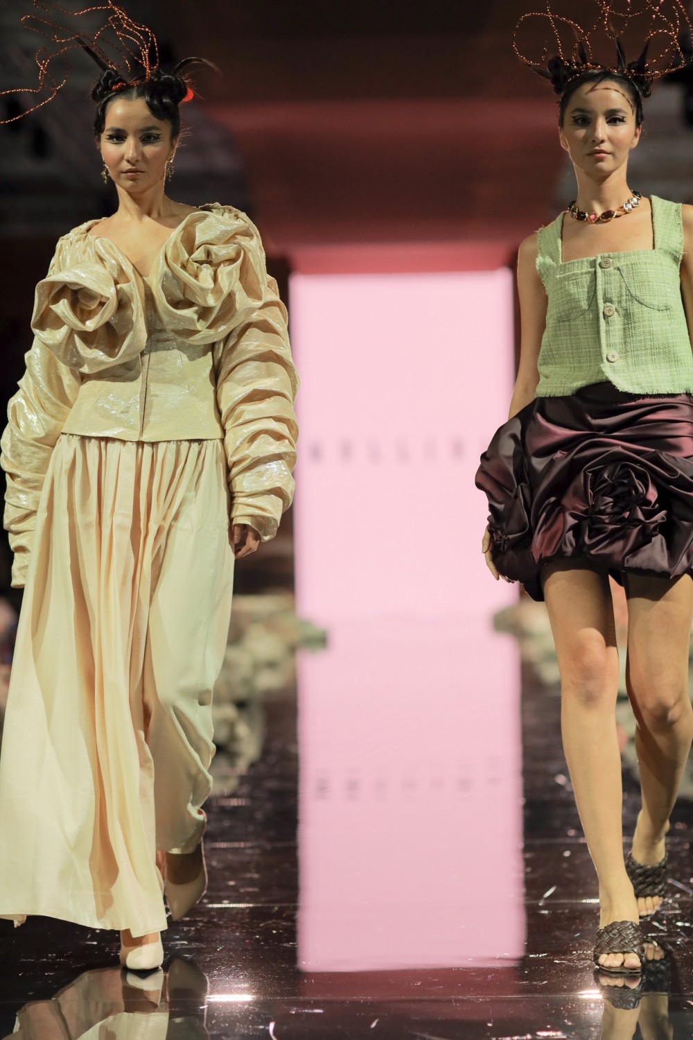 «Можно пошить платье, а можно пойти дальше и подарить женщинам мечту о красоте», — заявляет основательница бренда Маншук Куанышева. Более 10 лет казахстанский бренд Malli создает по-настоящему вневременную классику, а именно женственные и утонченные наряды, которые придутся по вкусу современной моднице. Показ начался в полной темноте — его открыла модель в белоснежном кейпе, словно «рыцарь света», осветила подиум своим присутствием.