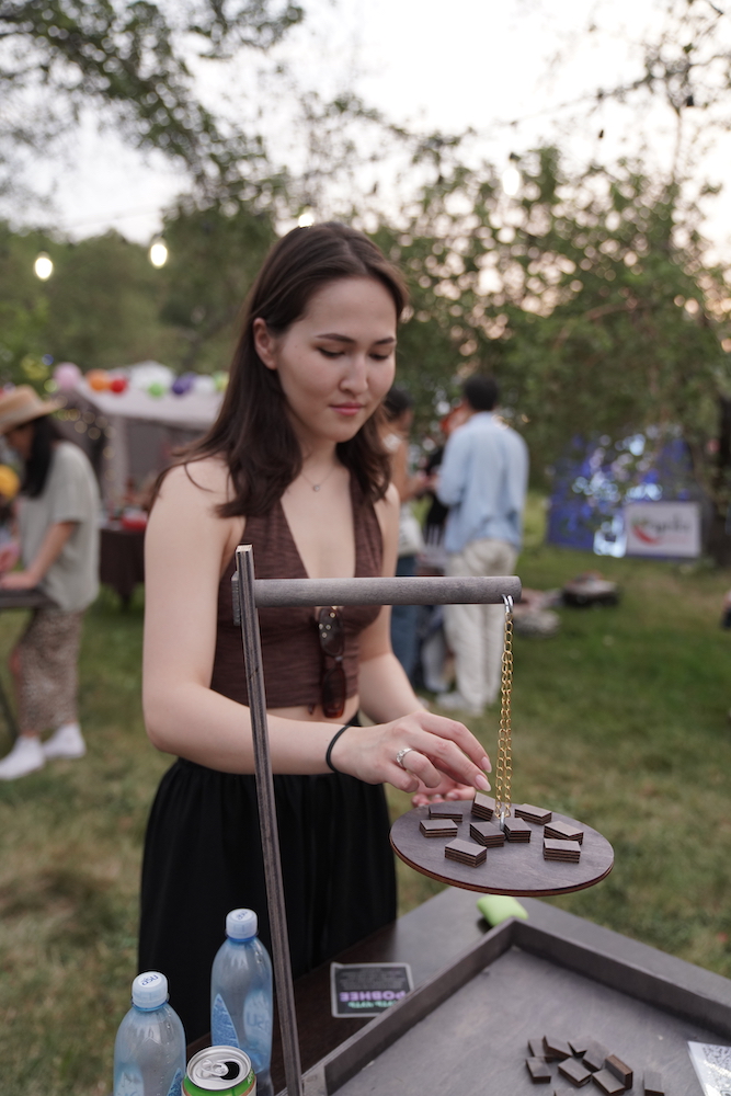 Кто-то пришел на мероприятие со своей половинкой, наслаждаясь легкой, драйвовой и душевной атмосферой праздника, а кто-то попытал удачу встретить спутника или спутницу жизни в уголке быстрых свиданий. Несколько столиков расположились на газоне, где желающие за отведенное время рассказывали интересные факты о себе. А дальше шли развлекаться, угощаться вкусными напитками, слушать подкасты на малой сцене, наблюдать за арт-перформансом, поедать традиционный плов и отрываться под треки диджеев из команды Quryltai и хедлайнеров вечера — ZOLOTO, Ayau и Liili.