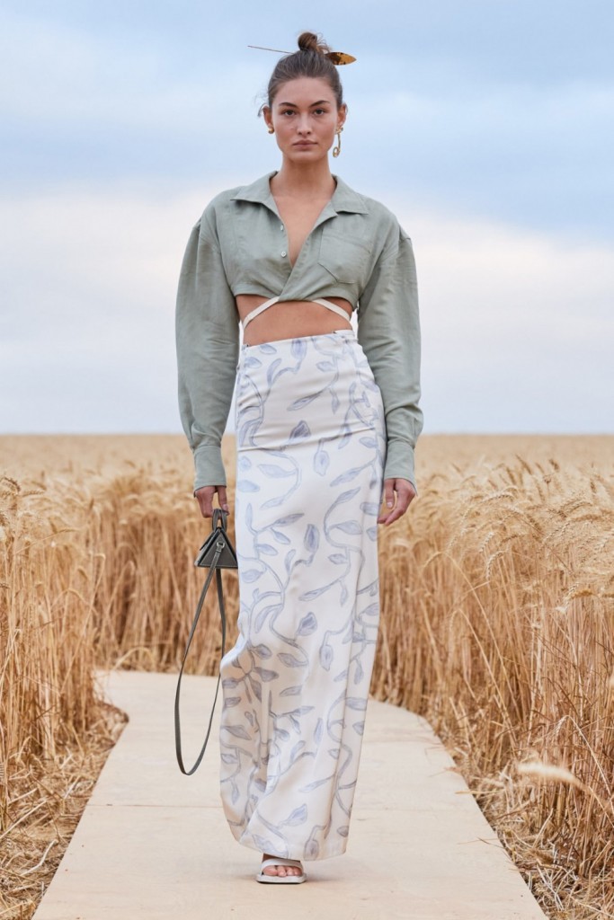 Симон Порт Жакмюс пригласил своих близких друзей в ржаное поле, рассадив на расстоянии в полутора метрах друг от друга. Модели передвигались по сооруженному волнообразному подиуму. А сам дизайнер остался верен бренду, повторив успех прошлогоднего шоу, которое прошло на лавандовом поле. Вот три основных тренда с весенне-летней коллекции Jacquemus.
