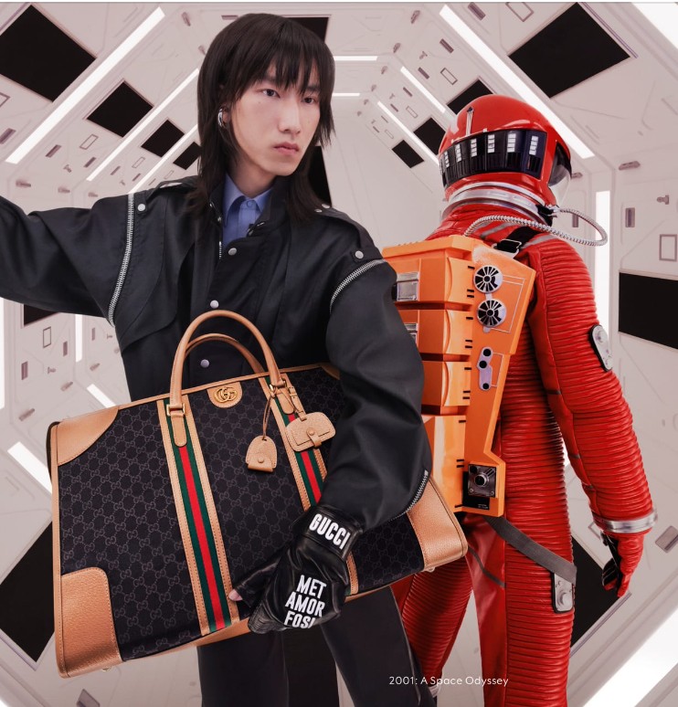 Модели были одеты как в коллекцию Gucci Fall 2022 - коллекцию, в которой было представлено сотрудничество с Adidas, - так и в воссозданные оригинальные костюмы Милены Канонеро и Шарлотты Уолтер. Стоит отметить, что кампания Exquisite привносит культовые образы из поп-культуры в свой образный мир моды.