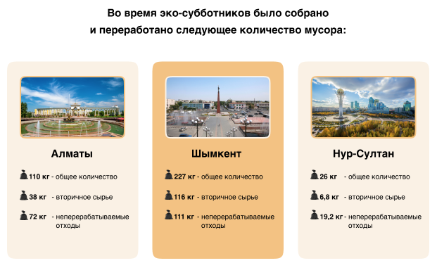 «В каждом городе есть такие места: пригород, полянки, реки, даже горные тропы, куда приходят отдыхать горожане и, к сожалению, часто оставляют свой мусор. Все эти территории нуждаются в очищении. На эко-субботниках мы рассказывали “зеленым” активистам, как правильно собирать и сортировать отходы, чтобы потом отправить их на переработку. Верим, что эти знания останутся с ними надолго и они будут их применять»,