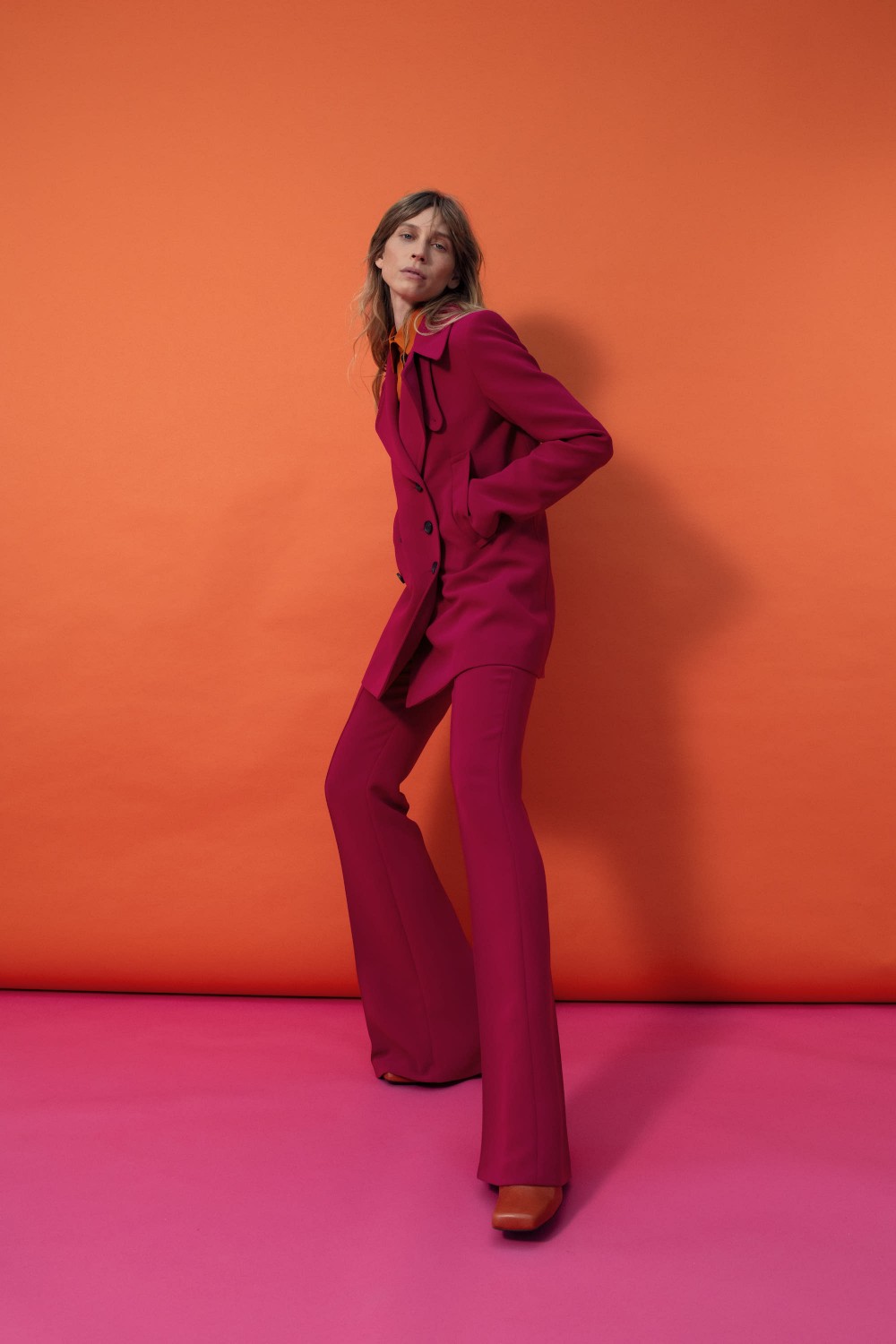 Цветовая палитра наравне с классическими оттенками бежевого, белого и черного наполнена яркими сильными тонами, такими как фуксия, оранжевый и синий.
