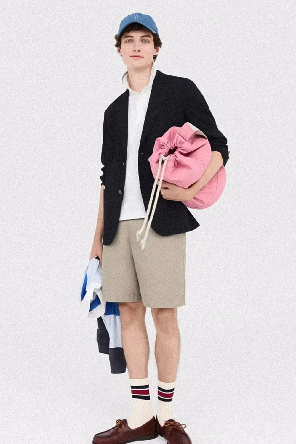 Коллекция SS ‘25 показывает, как традиционные преппи-элементы могут быть адаптированы к современным реалиям. Широкие шорты, рубашки с акцентными воротниками, строгие пиджаки и полосатые футболки — все это перекликается с эстетикой Андерсона, который, по сути, создал гардероб, отражающий его собственный стиль. Стоит отметить, что в рамках сотрудничества были представлены и аксессуары: полосатые галстуки и носки, джинсовые кепки и сумка-торба в новых ярких оттенках — розовом, оранжевом, зеленом и голубом.