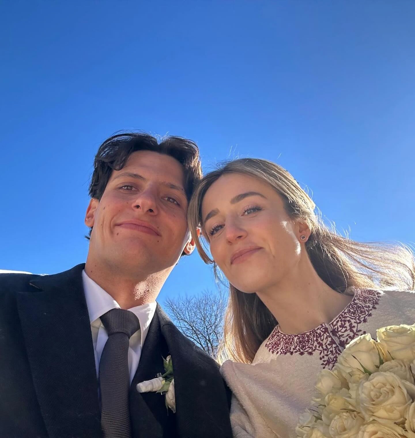 Пара отпраздновала торжество на заснеженных склонах Гштада в Швейцарии в кругу самых близких. Принцесса Шарлотта де Нассау выбрала белое мини-платье, расшитое узорами, а поверх надела пальто в тон. Легкий макияж и локоны, собранные на затылке, дополнили нежный образ невесты.