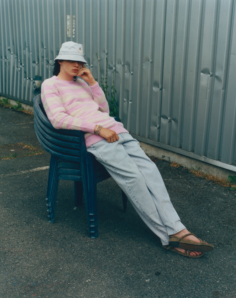 "От толстовки с отпечатком точно с почтовой открытки и куртки-бомбера из махровой ткани - этот гардероб состоит из вещей, которые похожи на сувениры о лете и концертах",