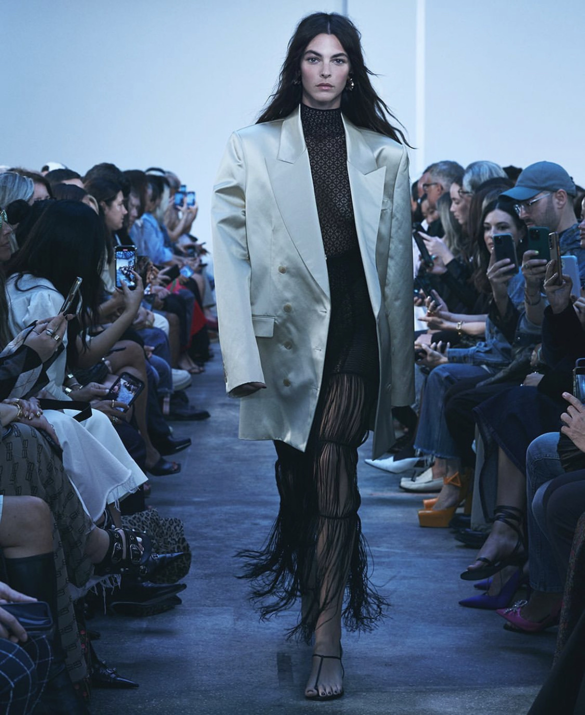 Трикотажные платья с бахромой и прозрачные платья (куда сейчас без них), четкая линия плеч и оголенные плечи, невероятной красоты плащи, обилие пайеток – похоже, героиня Khaite не намерена остаться незамеченной в этом сезоне.