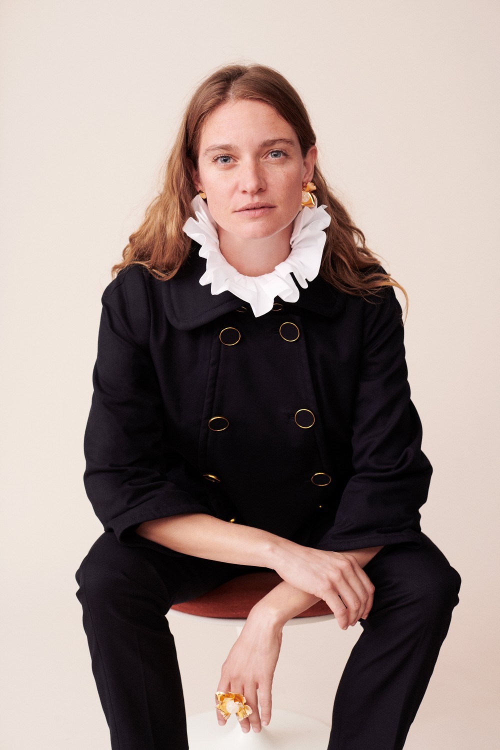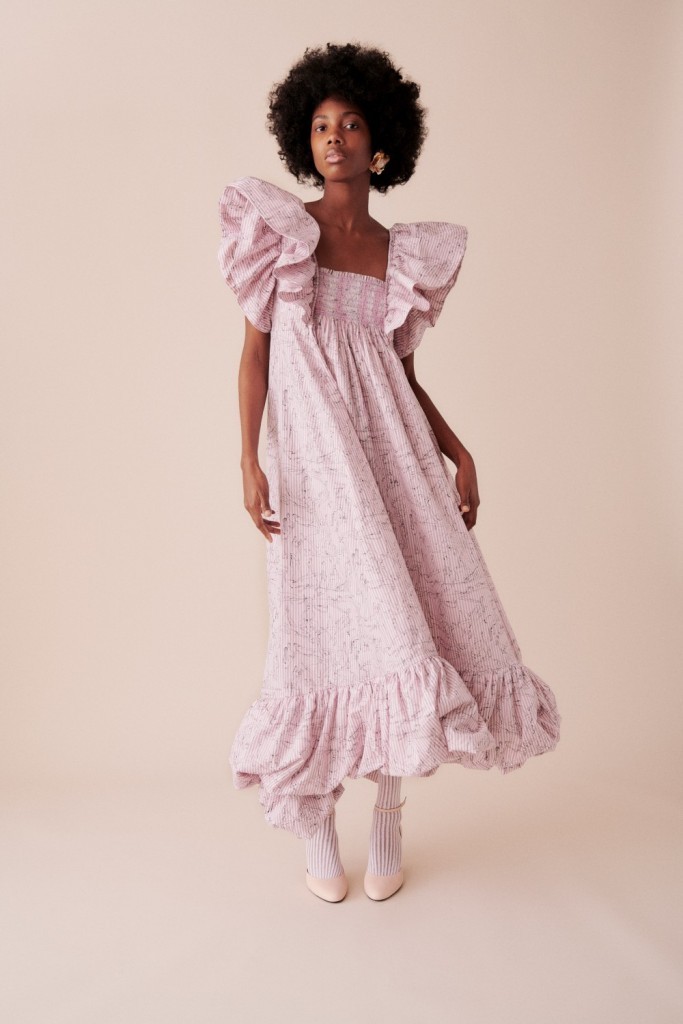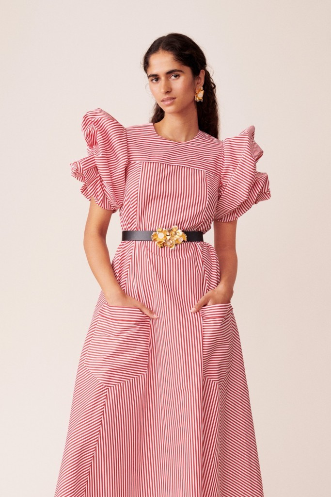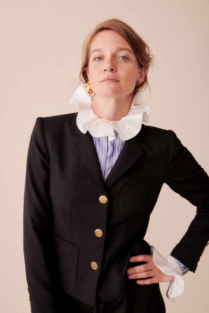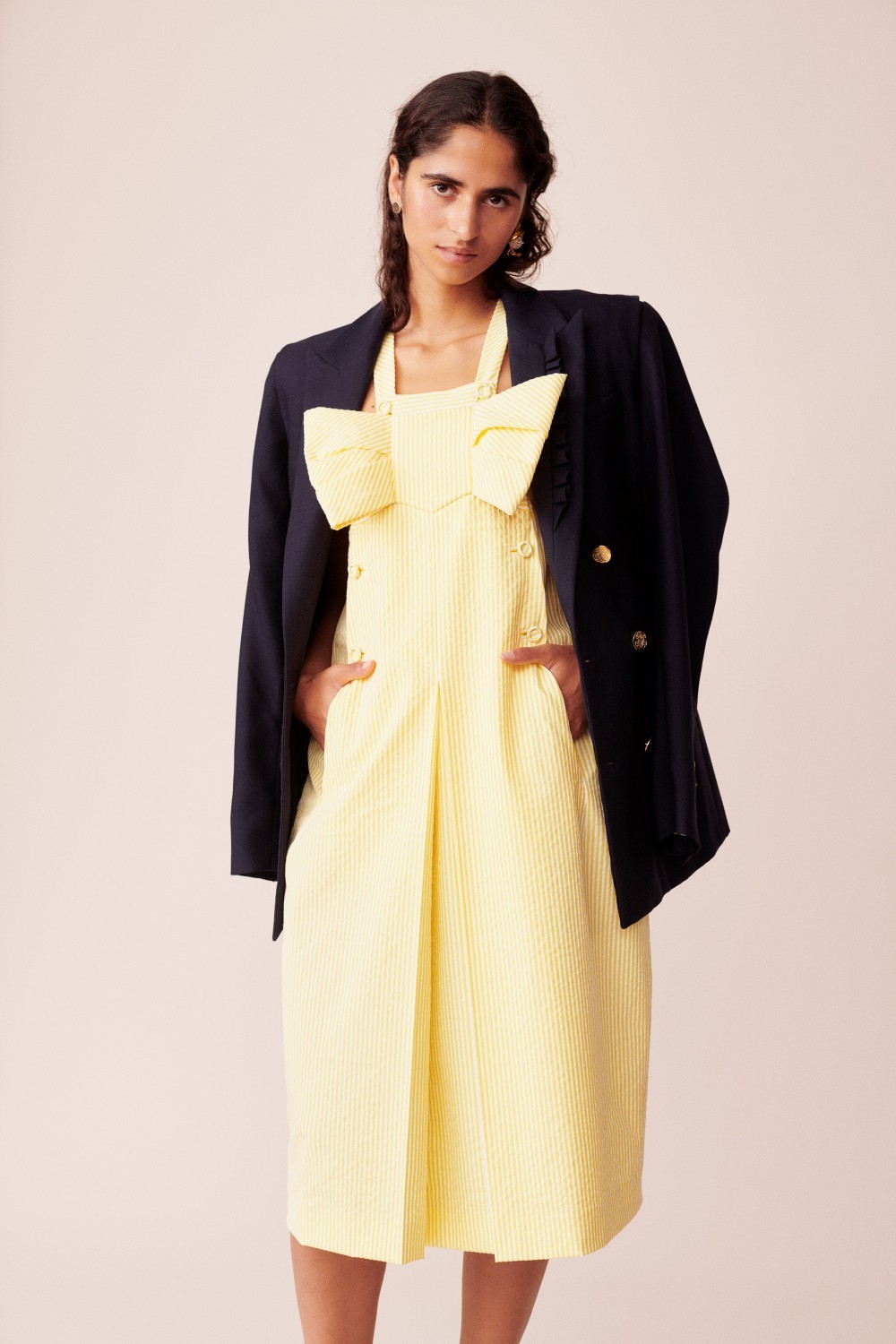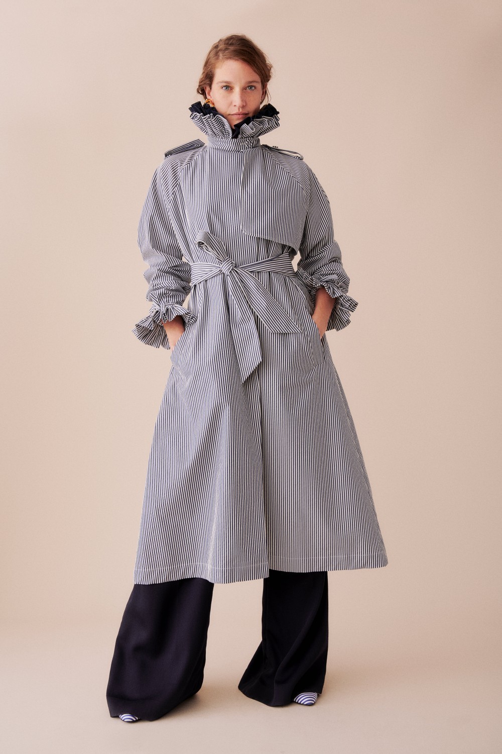 Дебютная коллекция от Prune Goldschmidt прославляет женственность. Для дизайнера женщины всегда многогранны, дерзки и слегка элегантны. Стройные силуэты, благодаря брюкам-клеш, высокая талия, объемные рукава, воротники и манжеты – все это создает достойный и изысканный образ. Игриво присутствуют и озорные принты Камасутры на хлопке и полосатом шелке.