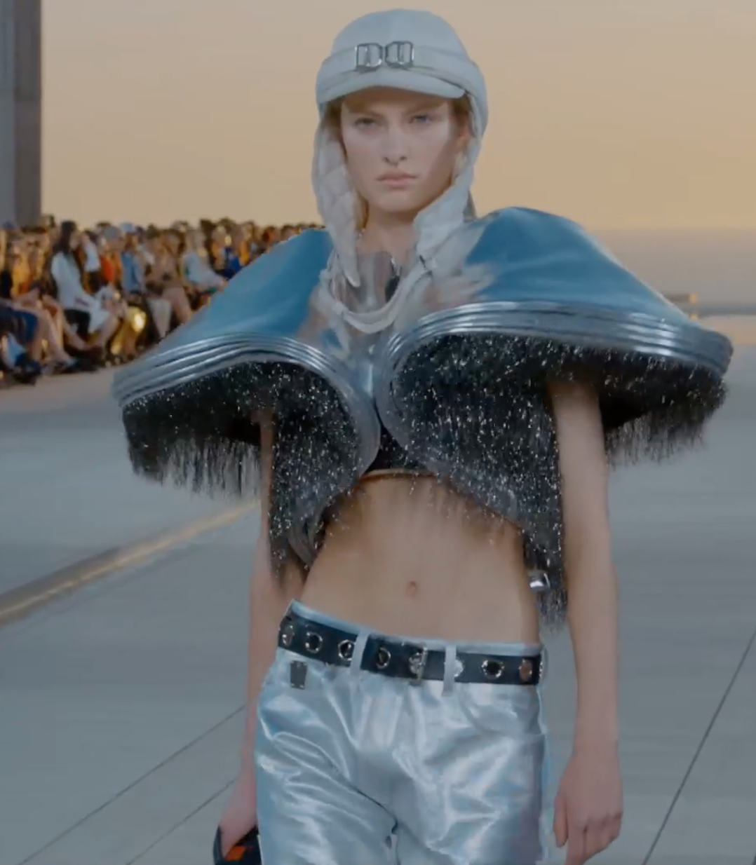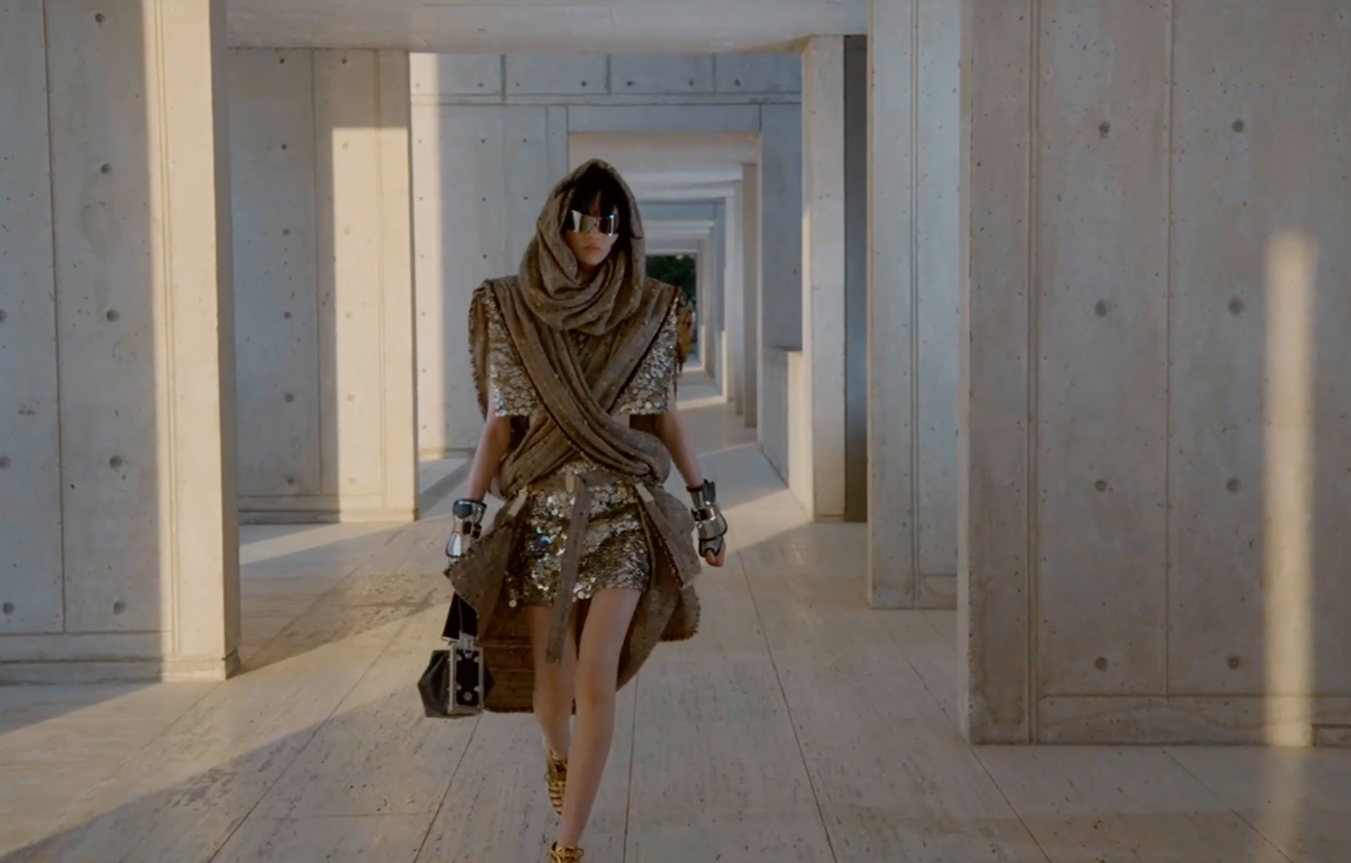 Через всю коллекцию прослеживаются футуристические нотки в разных проявлениях, которые навевают мысли об апокалиптических сюжетах вроде «Дюны». Все это напоминает кочевников, блуждающих по пустыне на пути к своему космическому шаттлу.