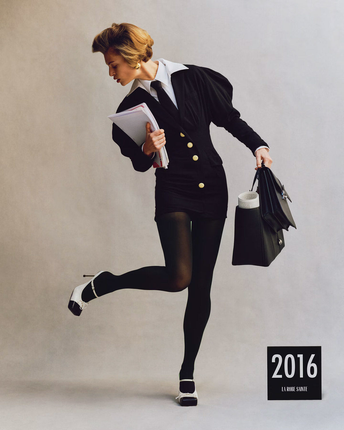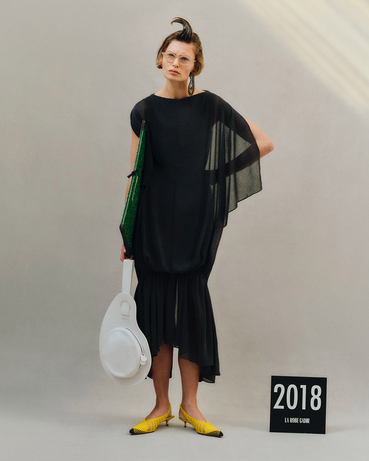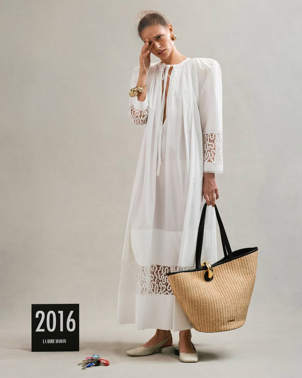 «Каждый образ рассказывает свою историю на языке Jacquemus: геометрические формы, драпировки, минимализм, архитектурные линии, прозрачные ткани и монохромные материалы, а также графичные точки и полосы»,