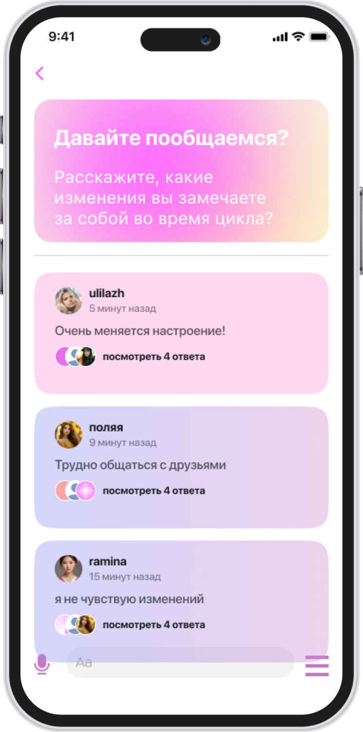 - Анонимное безопасное сообщество: форум, где девушки могут задавать личные вопросы и находить поддержку в безопасной среде. Модерация и отсутствие возможности отправки личных сообщений обеспечивают защиту от злоумышленников.
