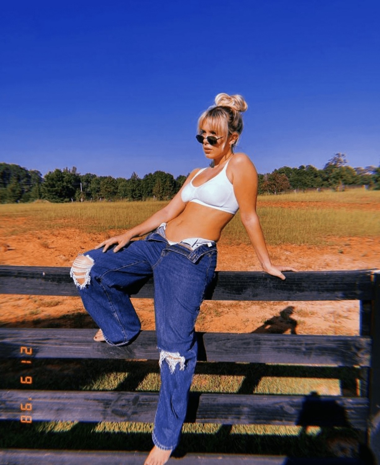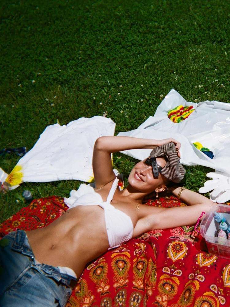 Прошли те времена, когда нужно было шептать подруге, что у нее расстегнулась ширинка. В последние несколько лет мы видим, как знаменитости и it-girls примеряют игривые луки с этим методом стилизации. Белла Хадид подхватила тенденцию еще в 2020 году. Она опубликовала фотографию, на которой расстегнутые джинсы были дополнены белым топом и полосатой бейсболкой. В итоге получился непринужденный аутфит для расслабленных летних дней — и он до сих пор служит вдохновением для девушек.
