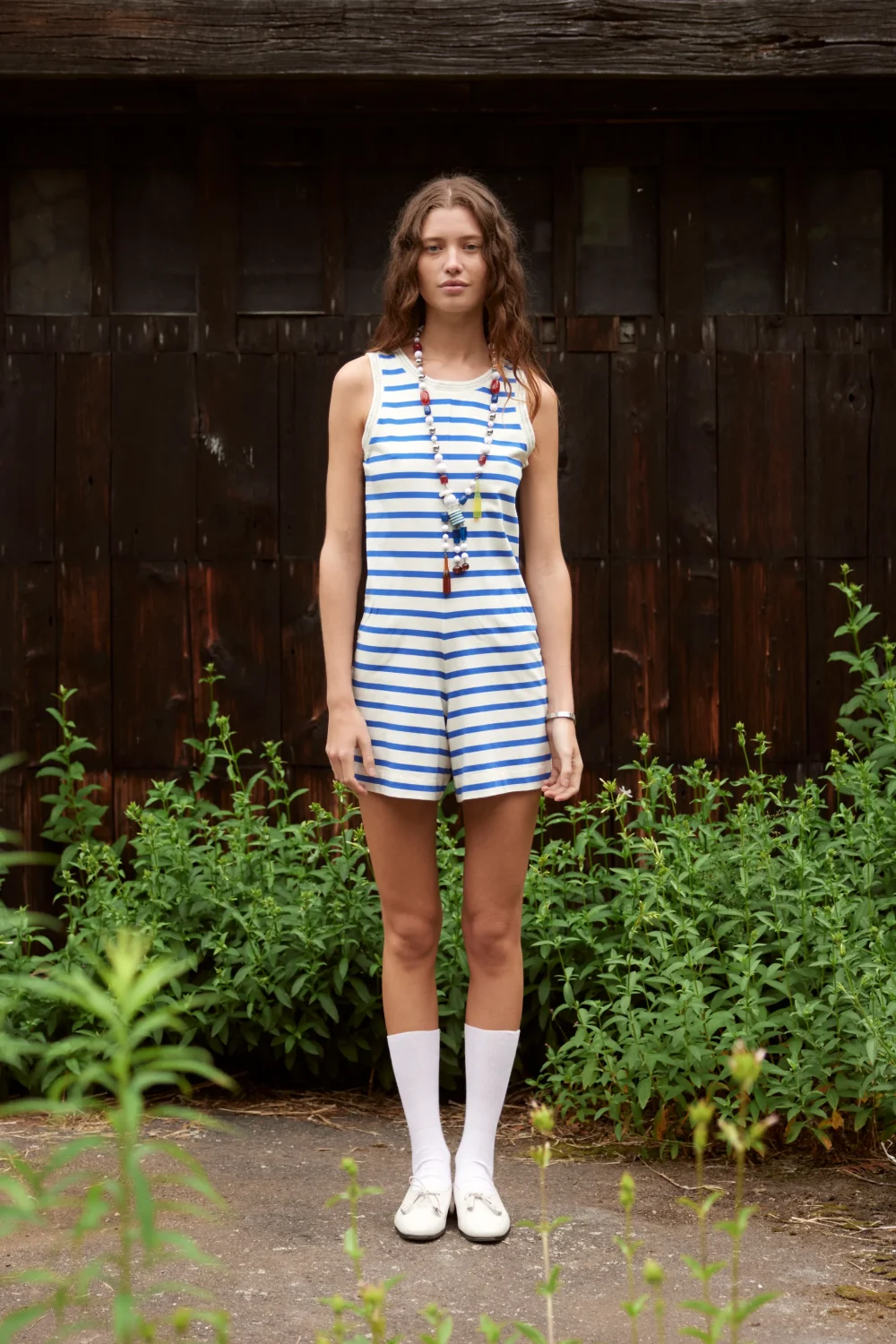Туники в французскую полоску, выполненные из хлопка, становятся данью классической пляжной одежде. Однако Эмили не ограничивается лишь этим предметом гардероба. В коллекции можно найти топы в стиле 1920-х из шелкового шифона, которые в сочетании с юбками выглядят расслабленно и элегантно, а также полосатые комбинезоны и костюмы с искусной вышивкой.